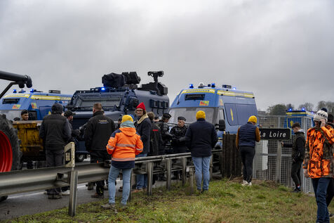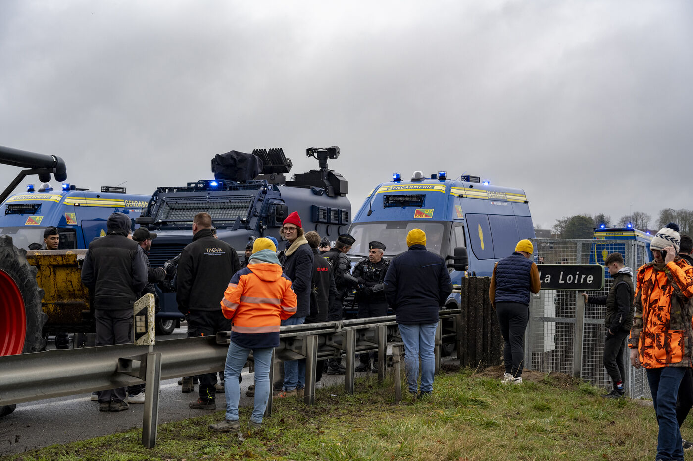 After being blocked the day before at Sully sur Loire in the Loiret region, around thirty tractors from Coordination Rurale 47 tried once again to cross the Loire to get to Rungis, but were blocked on the bridge of the departementale 940 by the Gendarmerie at Gien.