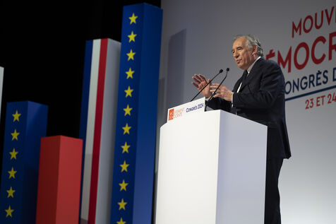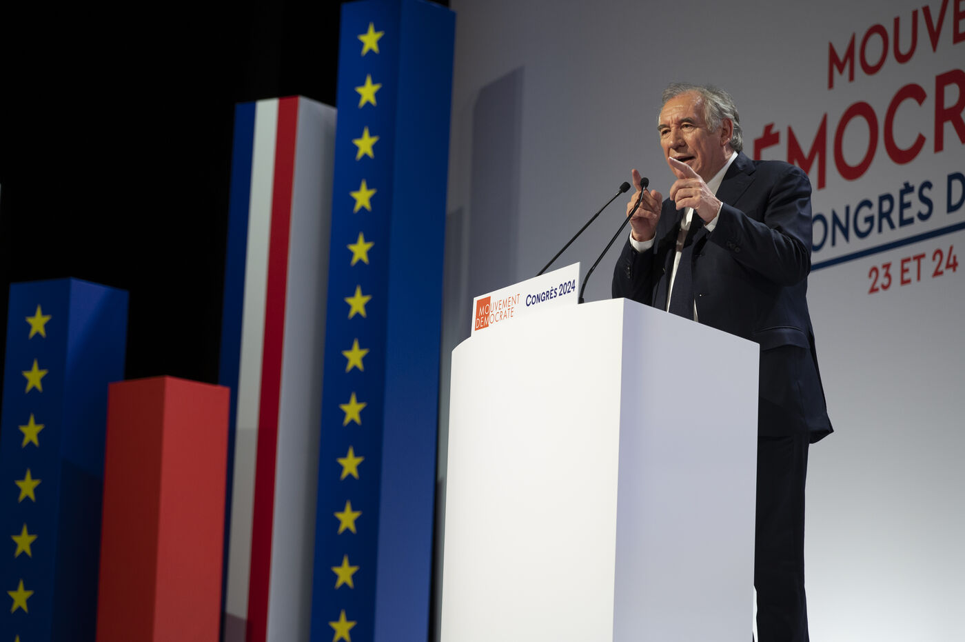 Francois Bayrou, re-elected chairman of the Modem, closed the congress with a speech and all the participants gathered around him to sing the national and European anthems in Blois on 24 March.