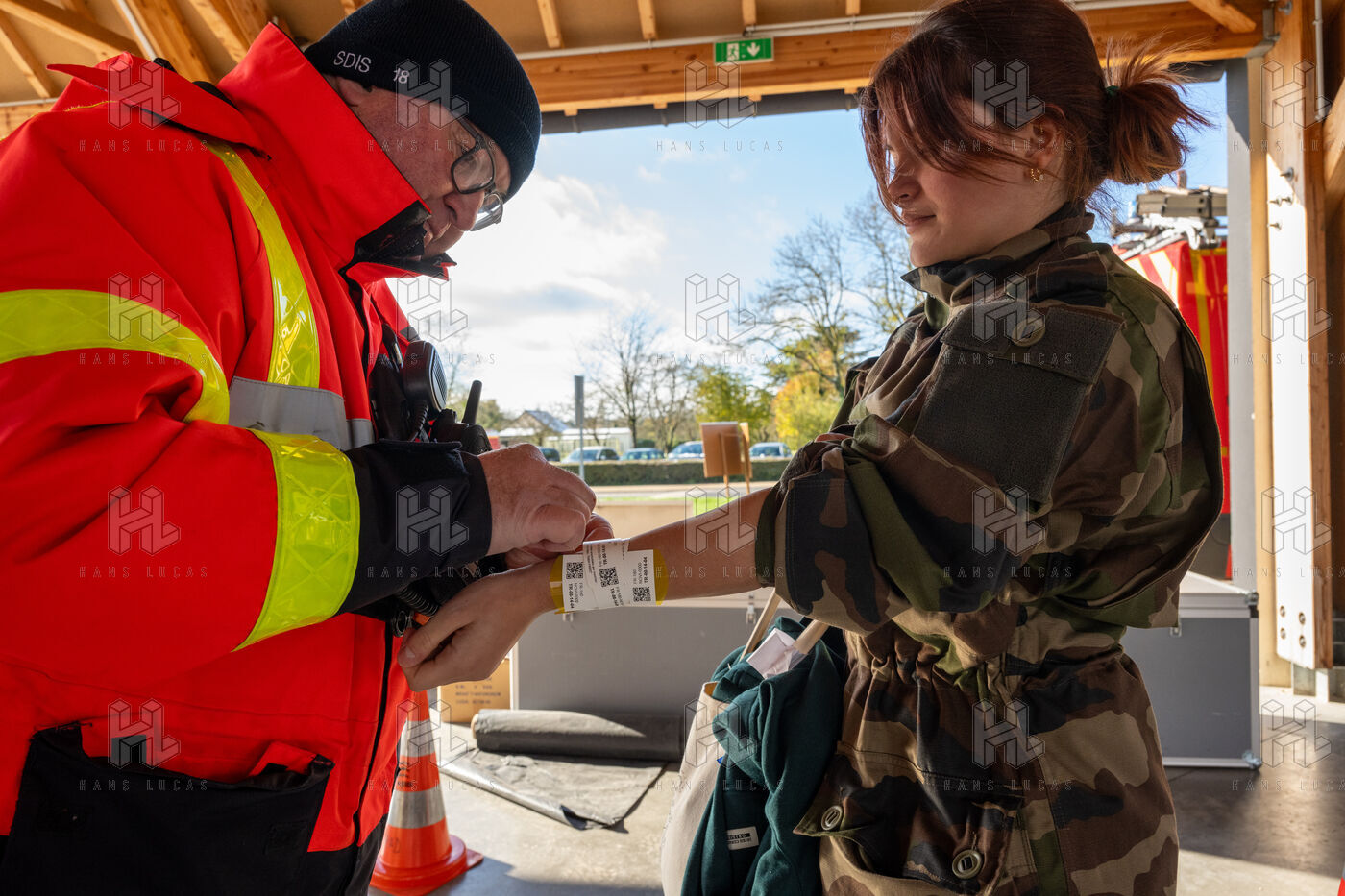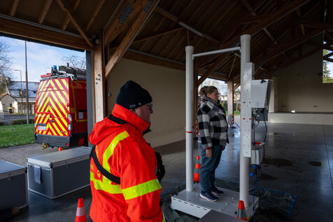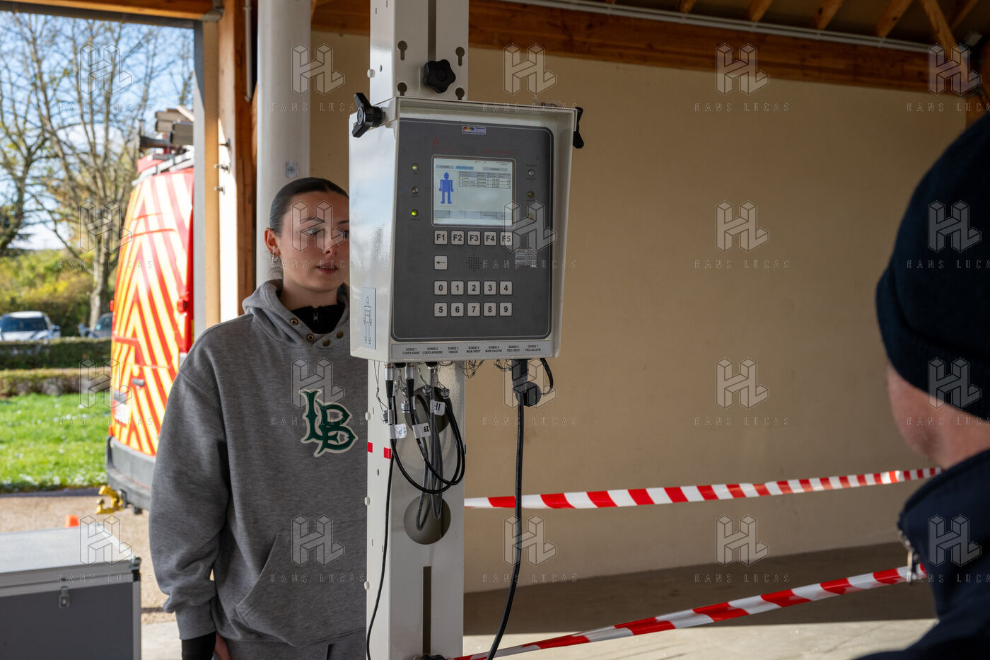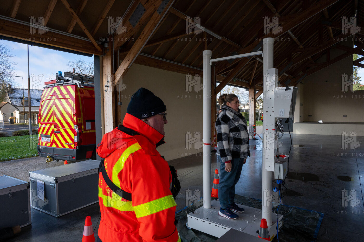 A control and decontamination centre was set up by the Sécurité Civile with the help of the fire brigade and the Institut de Radioprotection et de Sûreté Nucléaire (IRSN) during an exercise simulating an incident at the Belleville sur Loire power station. Volunteer high school students from the region played the roles of people who might be contaminated by radioactivity.