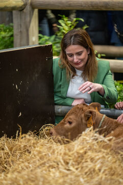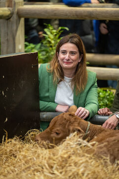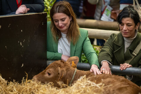 Marine Tondelier, accompanied by Benoit Biteau, visited the Salon de l'Agriculture and greeted the show's muse cow: Oupette.