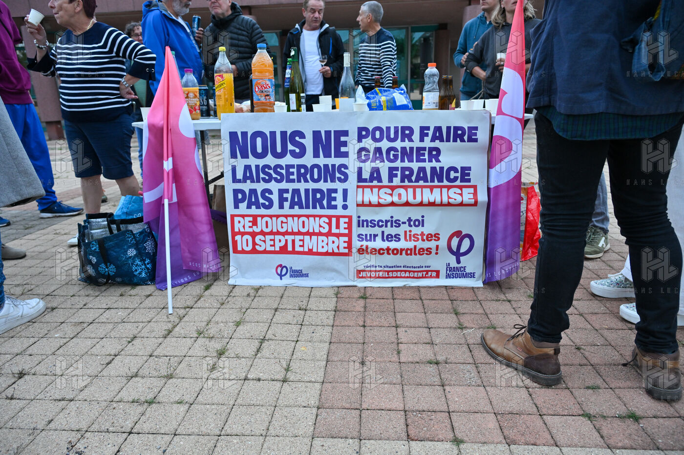 Un "pot de départ" pour le départ de François Bayrou est organisé devant la mairie de Varennes Vauzelles dans la Nièvre.