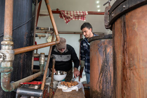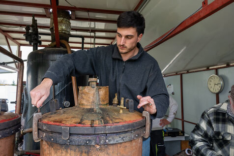 For three generations, the Bourgeat family has been devoted to the art of distillation in Nièvre. Florent Bourgeat travels around the villages of the department with the family still, which dates back to 1907. In the village of Bouis-Gibault, regulars gather and share lunch prepared by a customer with him. Florent also runs his own business, La goutte du fils, which produces and sells brandy and liqueur.