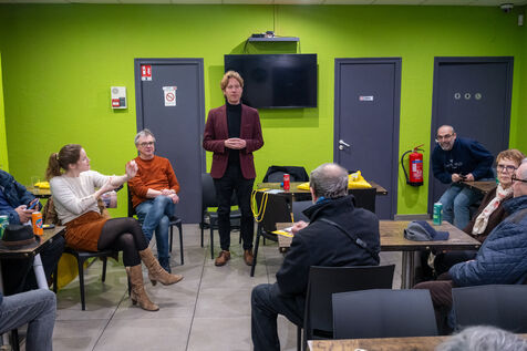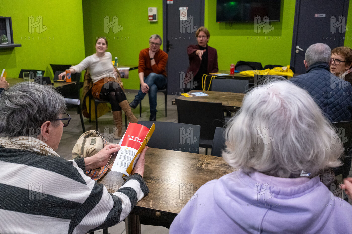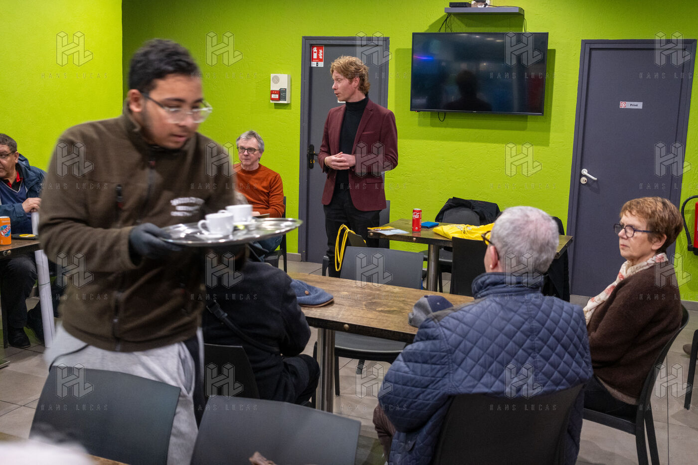 Public meeting in a kebab restaurant organised by Wilfrid Sejeau, leader of Demain Nevers. Wilfrid Sejeau, Green Party candidate and leader of the united left, is running against incumbent mayor Denis Thuriot of the Renaissance party.