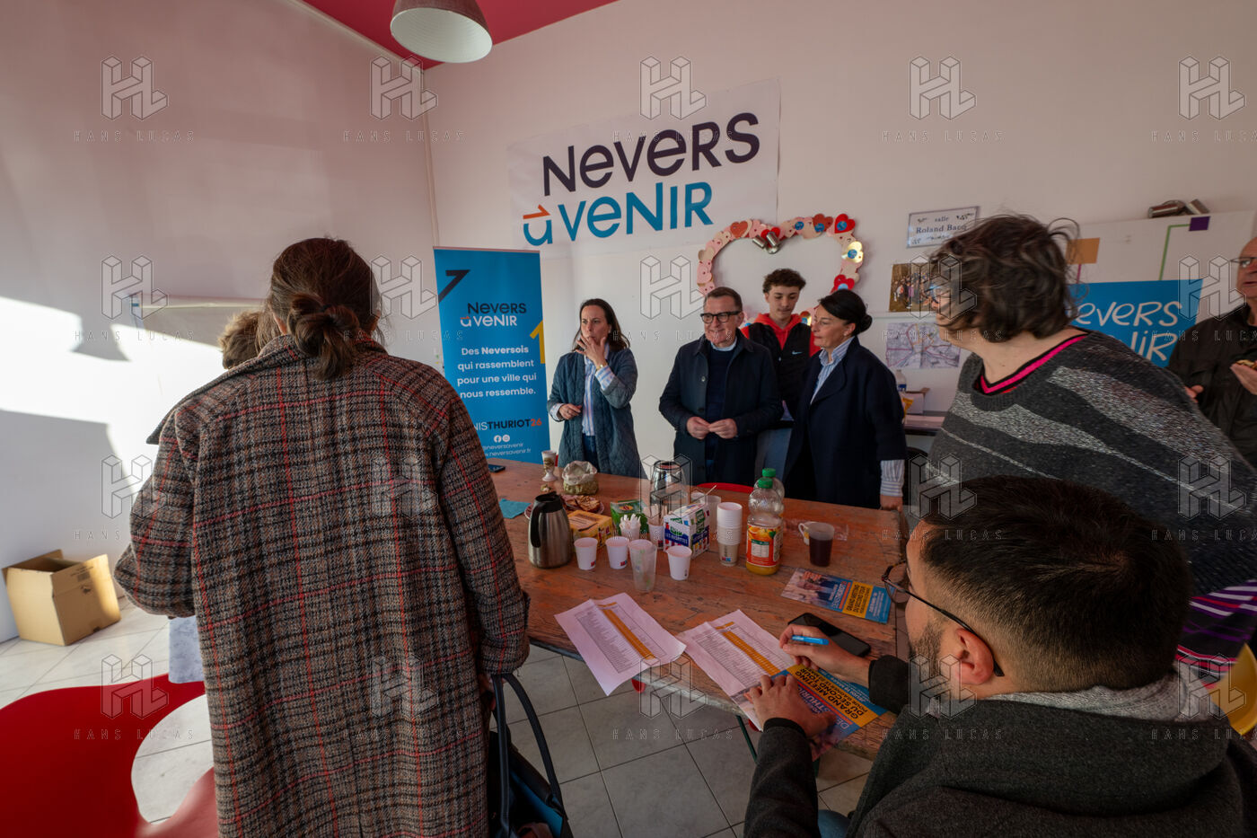 Tout les matin l'équipe de campagne du maire sortant Denis Thuriot se réunie au local de campagne autour d 'un petit déjeuner pour faire le point et planifier les actions de la journée.