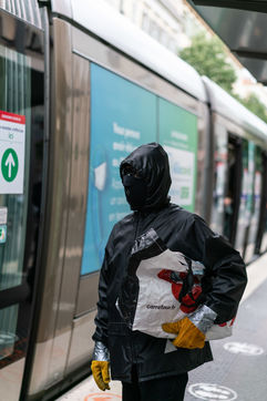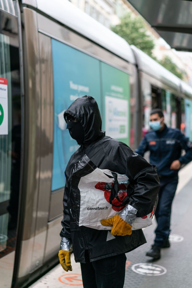He has been circulating in the districts of Nice since the covid 19 crisis, but nobody knows who he is or why he has adopted this protection system consisting of 3 masks on top of each other, scootch on the wrists and calves, and black moonglasses. The inhabitants of the Notre Dame district nicknamed him Ratapignata man (the bat man in Nice). He never talks, doesn't answer when you talk to him, but I agreed to follow him for 1 hour in the center of Nice.