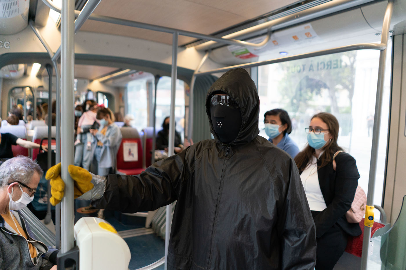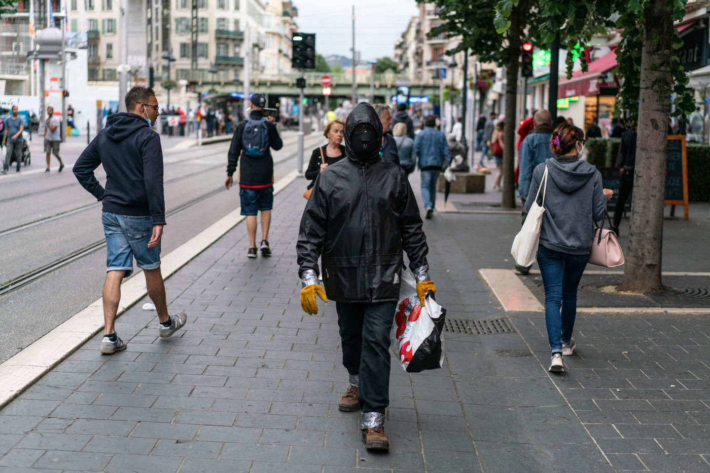 Il circule dans les quartiers de Nice depuis la crise du covid 19, mais personne ne sais qui il est, ni pourquoi il a adopté ce systeme d'ultra-protection composé de 3 masques superposés, du scotch sur les poignets et les chevilles, des lunettes noires et un kway à capuche. Les habitants du quartier Notre Dame l'ont surnommé "Ratapignata man "(l'homme chauve souris en Niçois). Il ne parle jamais, ne répond pas aux questions qu'on lui pose, mais j'ai il a accepté que je le suive pendant une heure?