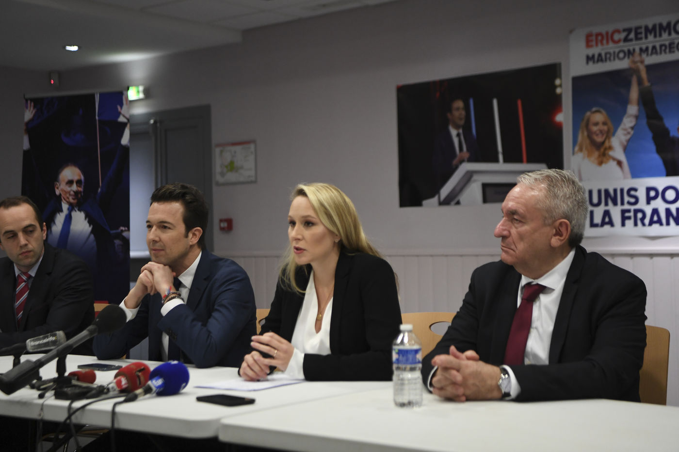 France, Saint-Jean-le-Blanc, 2022-03-16. Press conference by Marion Maréchal LE PEN, former Rassemblement National and now supporter of Eric Zemmour, in the presence of Guillaume Peltier, MP for Loir-et-Cher