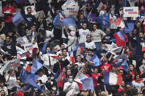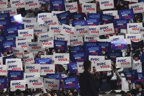 France, PARIS, 2022-04-02. PREMIER MEETING DU CANDIDAT PRESIDENT , EMMANUEL MACRON.