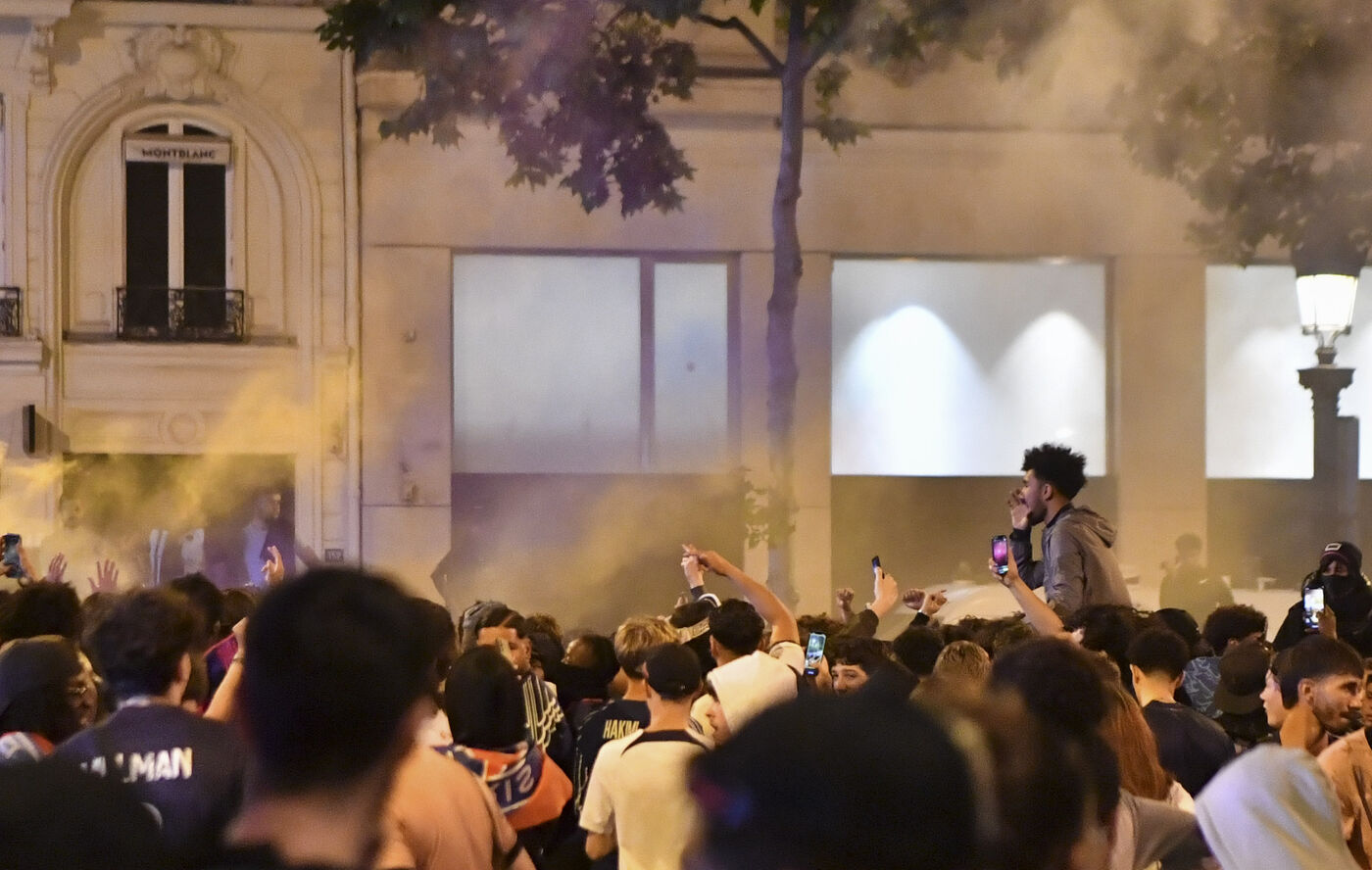scene de liece a Paris apres la victoire du PSG en finale de la Ligue des Champions.