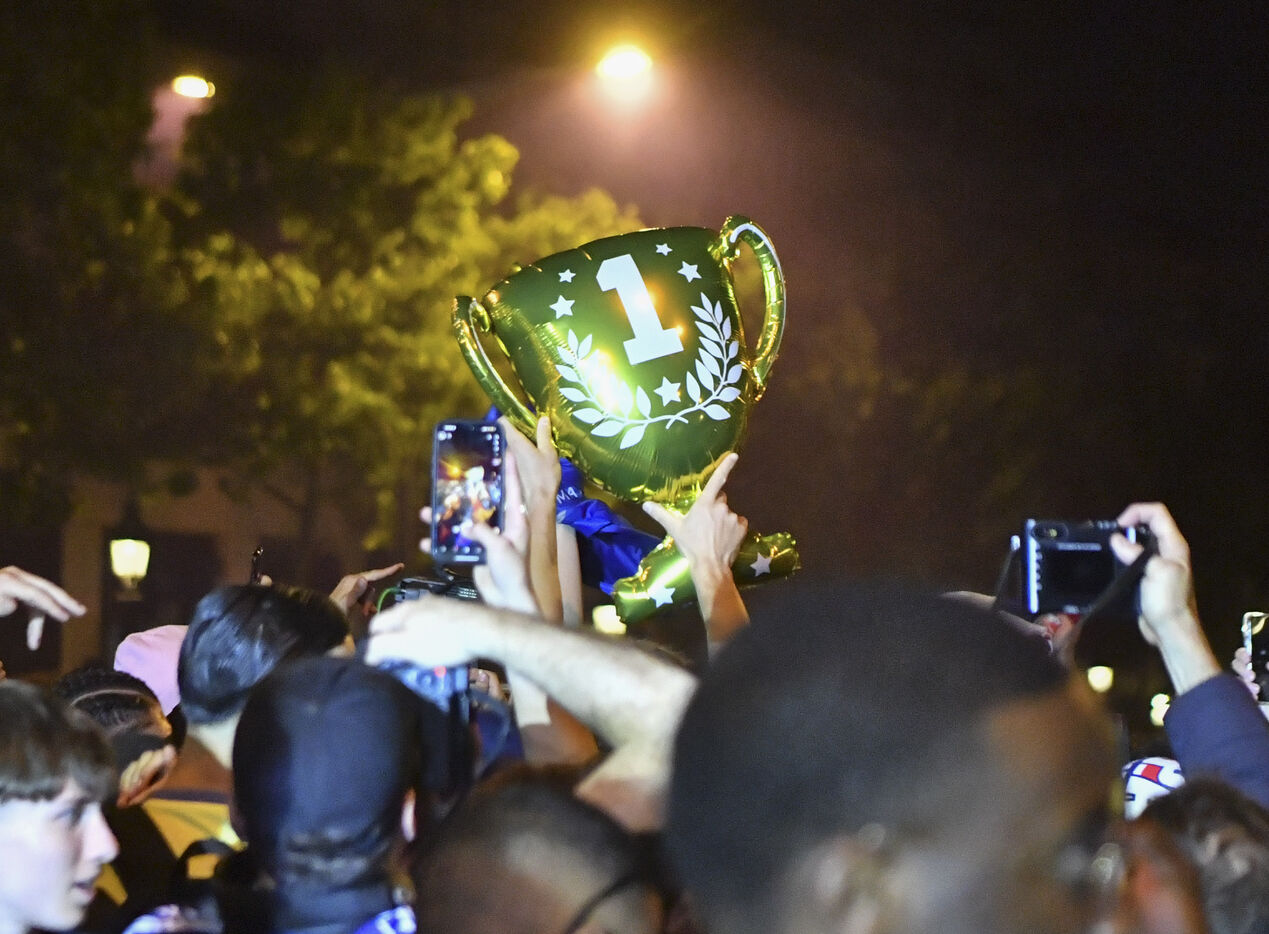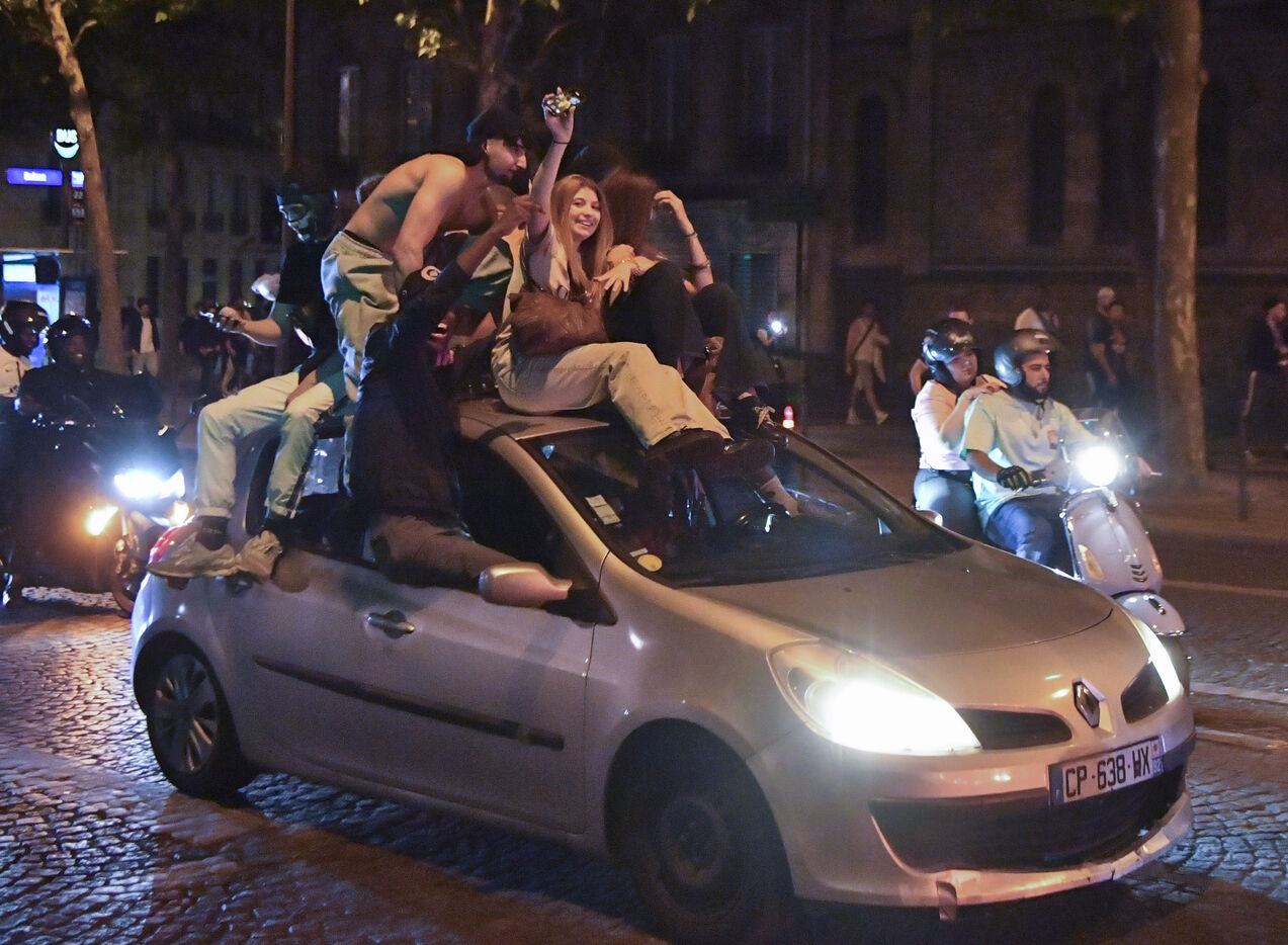 A scene of joy in Paris after PSG's victory in the Champions League final.