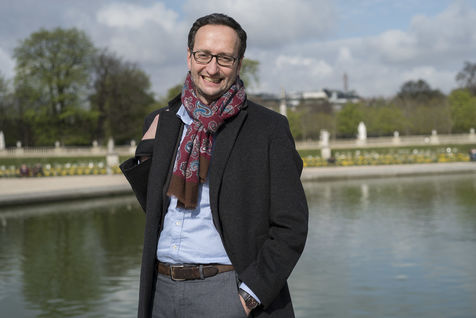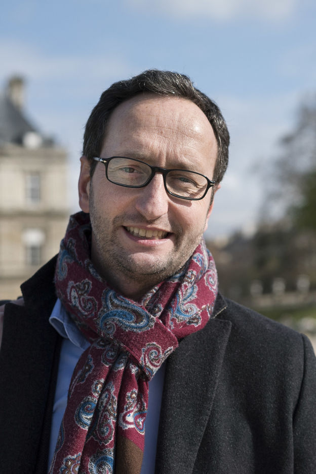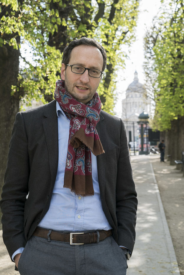 Le 08/04/2016, portrait de Mathieu Detchessahar, professeur des universités (Laboratoire d'Economie et de Management Nantes-Atlantiques LEMNA) au jardin du Luxembourg à Paris. Auteur du livre "Le marché n'a pas de morale ou l'impossible société marchande" (2015).