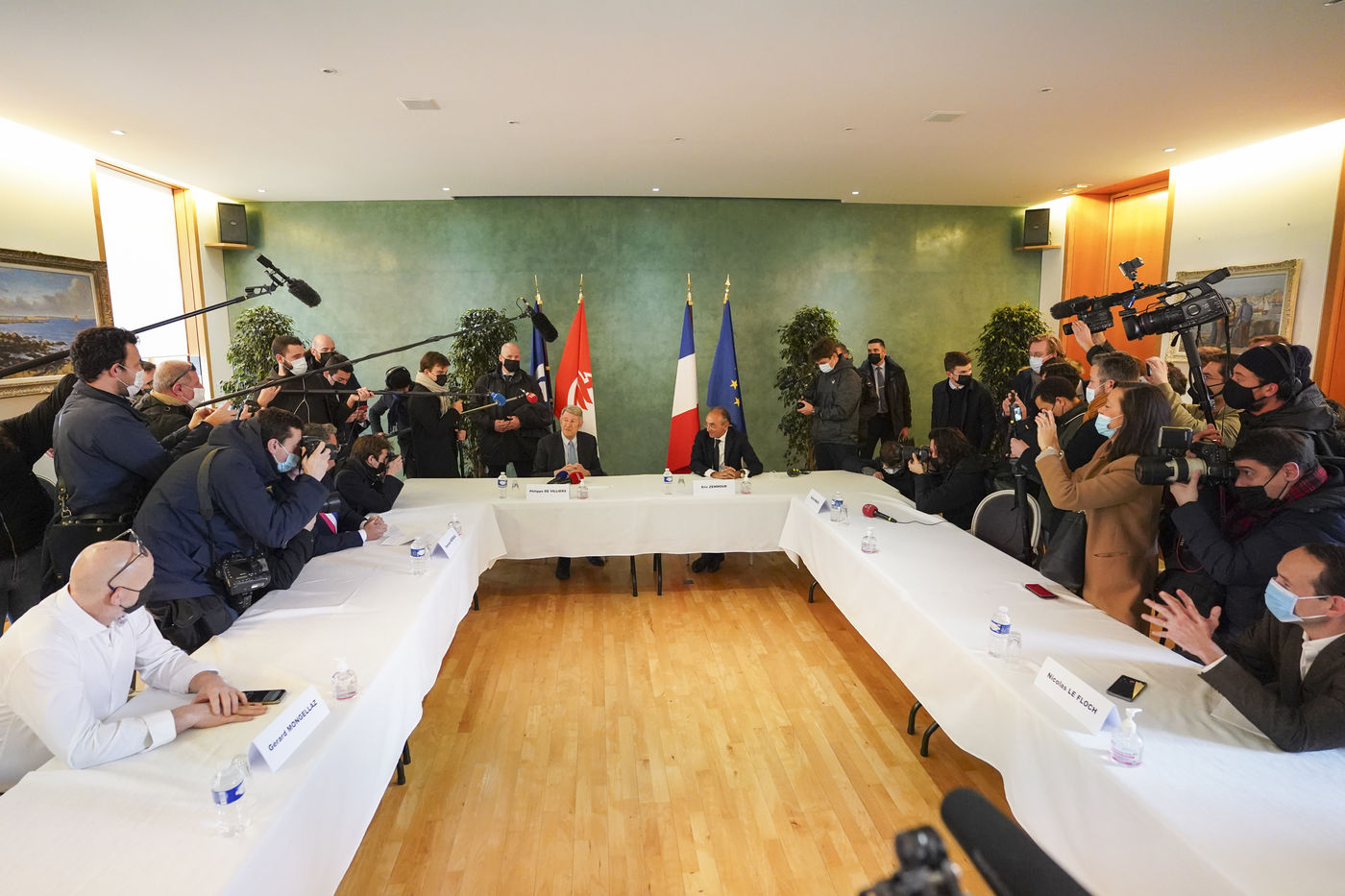 This Saturday, January 8, 2022, Eric Zemmour is in Sables-d'Olonne with Philippe de Villiers. They first talk with the mayor, Yannick Moreau, about the decision of the Administrative Court of Nantes which ordered the removal of the statue of Saint-Michel, placed in front of a church. Then, they went to the Audubon room, to hold a public meeting. Finally, after having been joined by Patrick Buisson, they moved to the feet of the statue of Saint-Michel, with all their supporters, to protest against the decision of the court.