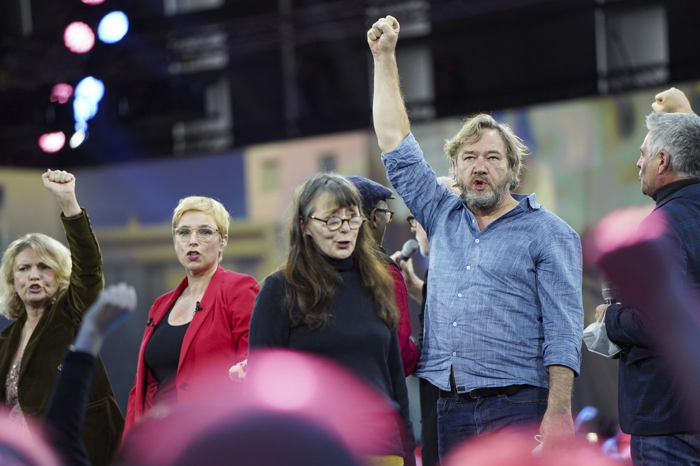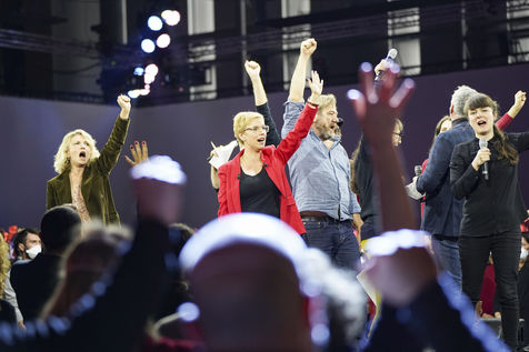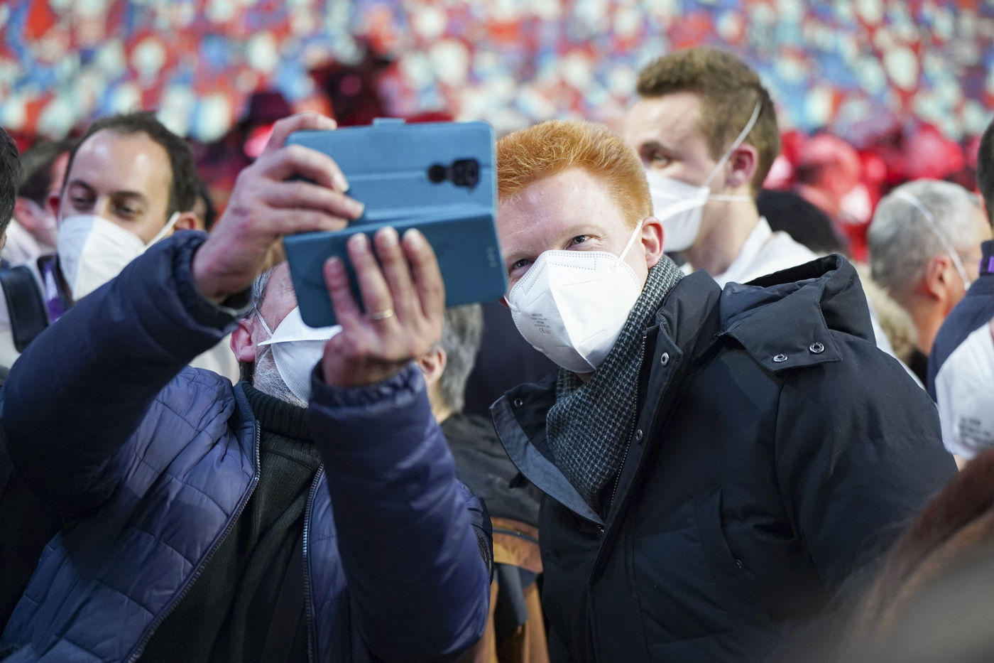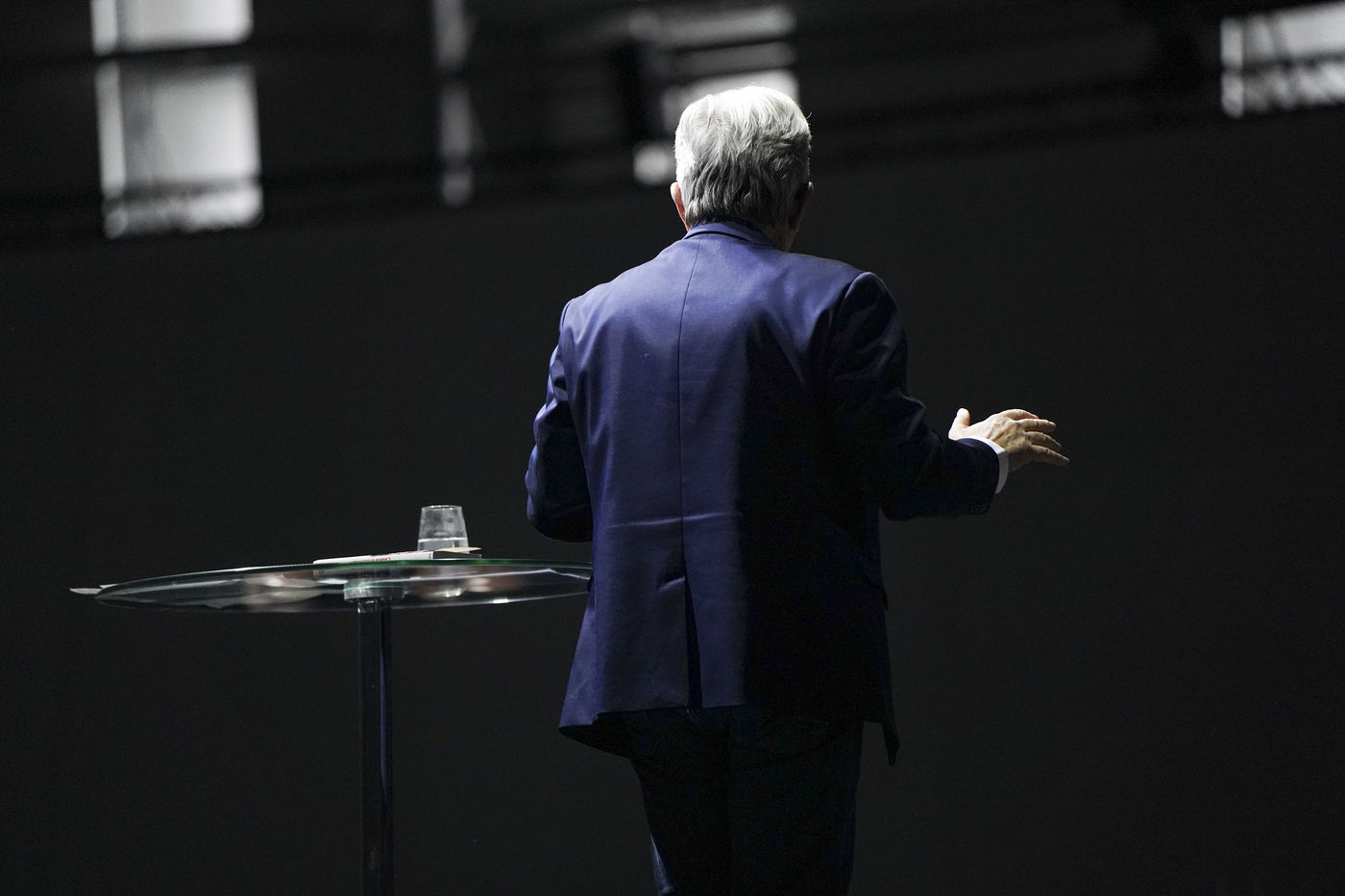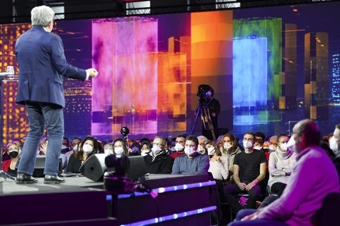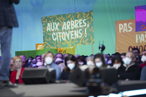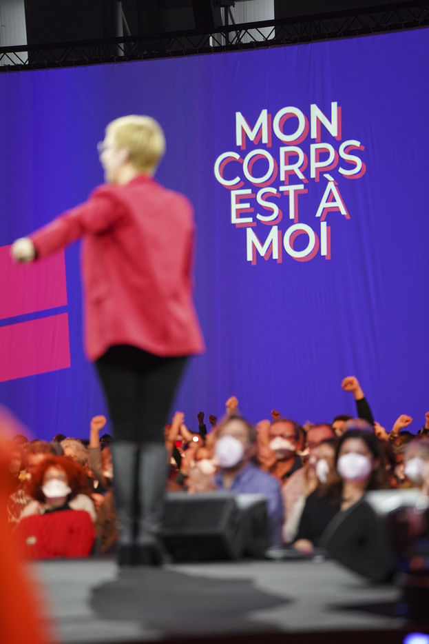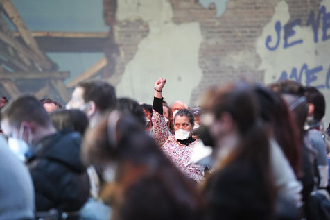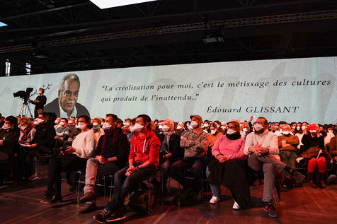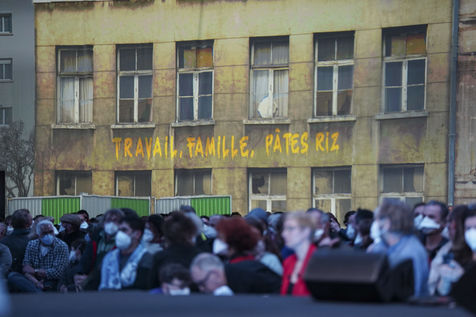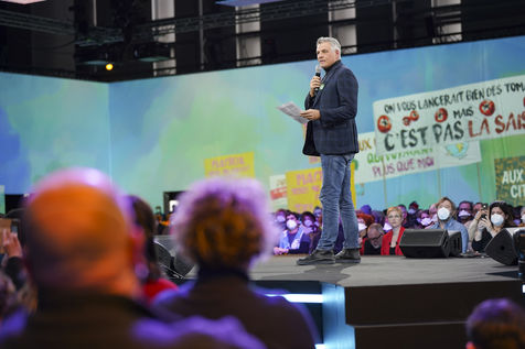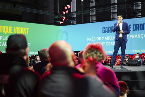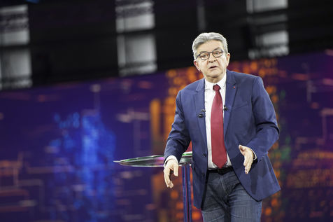 Dans le cadre de la campagne politique à l'élection présidentielle de 2022, Jean-Luc Mélenchon tient une réunion publique à Nantes, dimanche 16 janvier 2022. Ce meeting immersif et olfactif se veut une première mondiale.