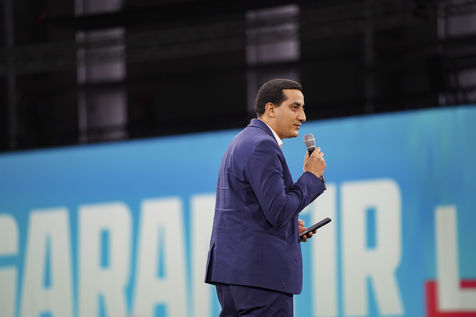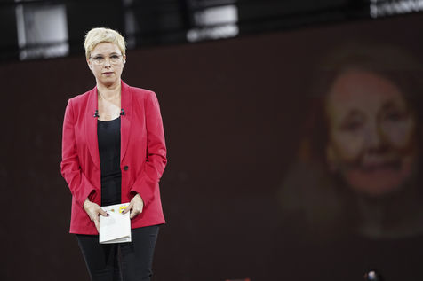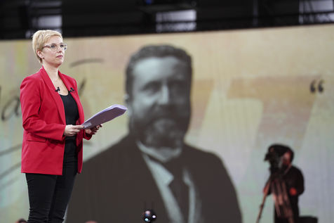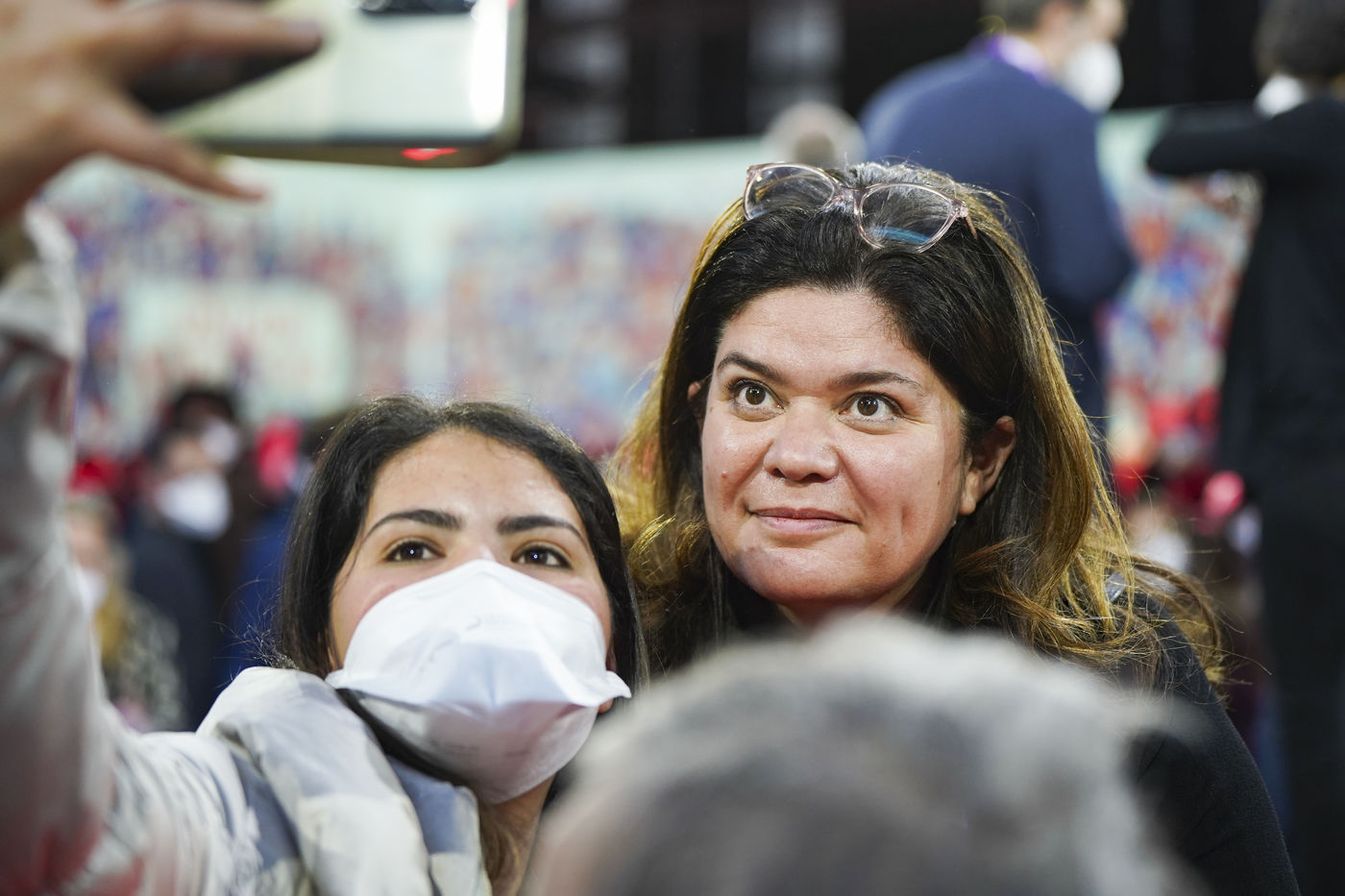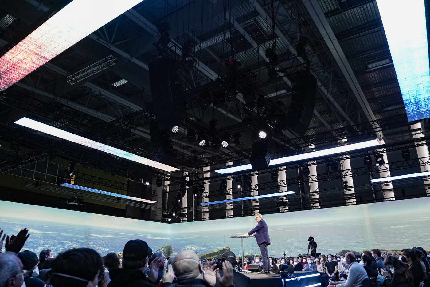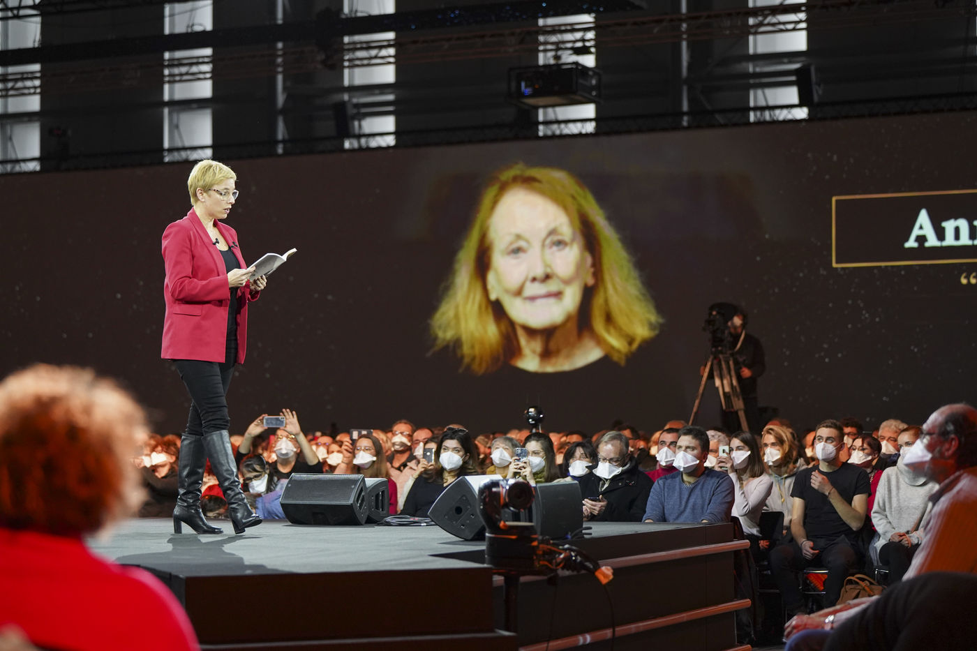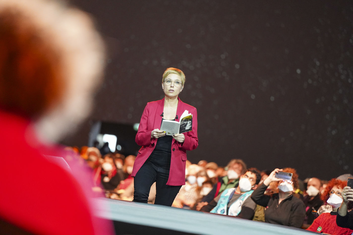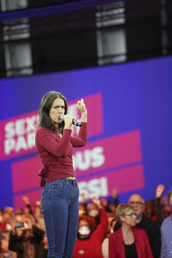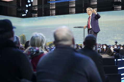 Dans le cadre de la campagne politique à l'élection présidentielle de 2022, Jean-Luc Mélenchon tient une réunion publique à Nantes, dimanche 16 janvier 2022. Ce meeting immersif et olfactif se veut une première mondiale.