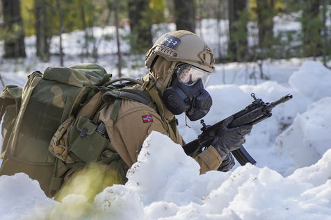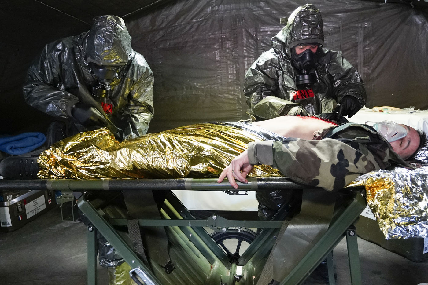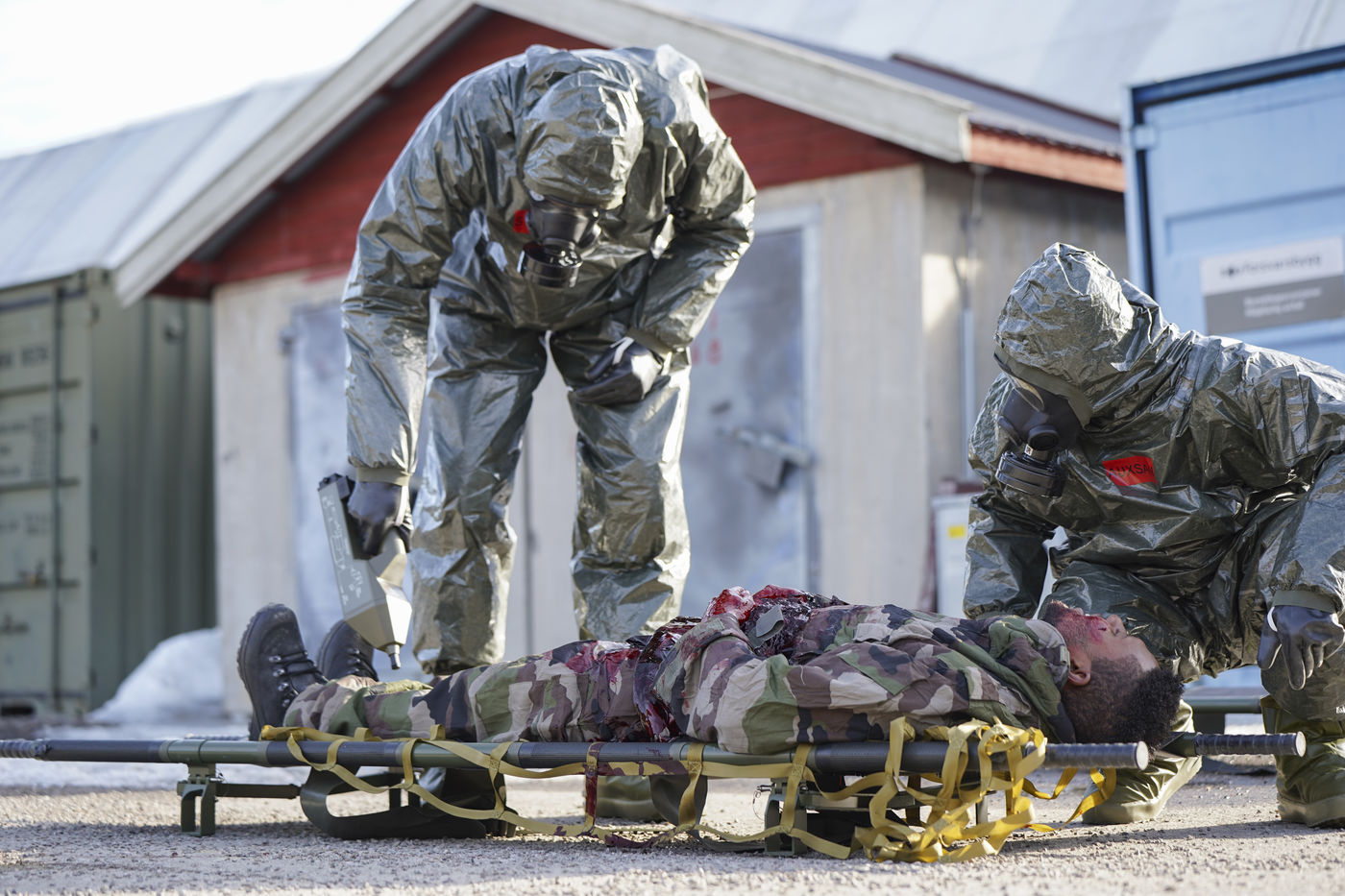 Le 2ème régiment de dragons NRBC (Nucléaire, Radiologique, Biologique et Chimique) est en alerte pour l'OTAN et participe à l'exercice Cold Response 2022, en Norvège. Il s'entraine avec l'armée norvégienne à la lutte contre les menaces NRBC en pratiquant des reconnaissances de zone contaminée, de l'identification et des prélèvements de produits toxiques ainsi que de la décontamination de personnel et de véhicules selon les normes et les procédures de l'OTAN.