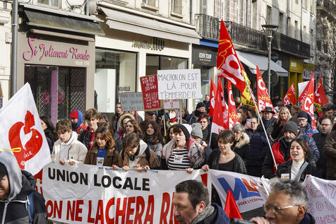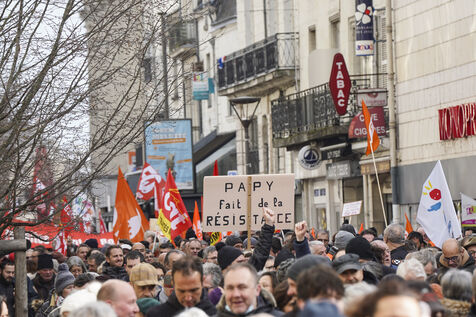 Tuesday 7 March 2023, sixth day of demonstrations in Saumur (sub-prefecture of Maine-et-Loire) against the pension reform project. Nearly 5000 people took to the streets, marking the strongest day of mobilisation against the government's bill.