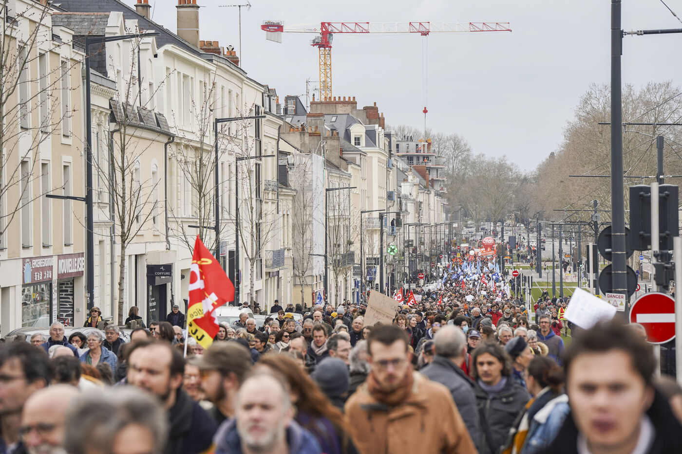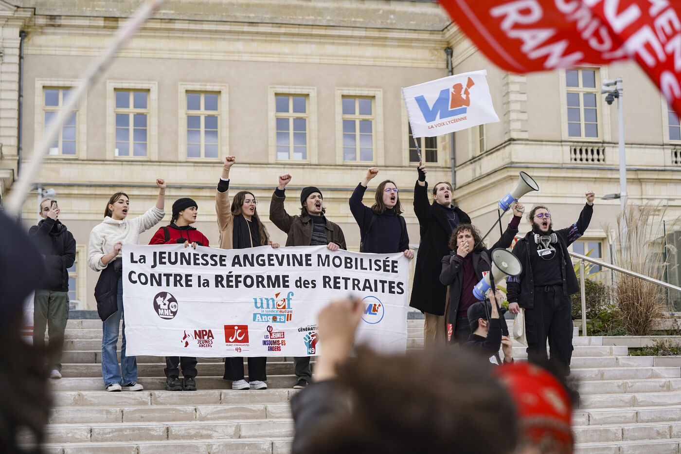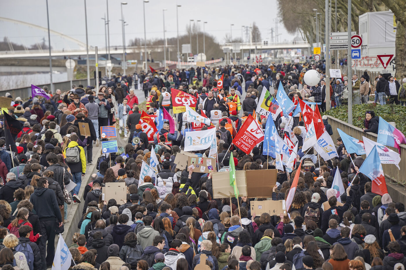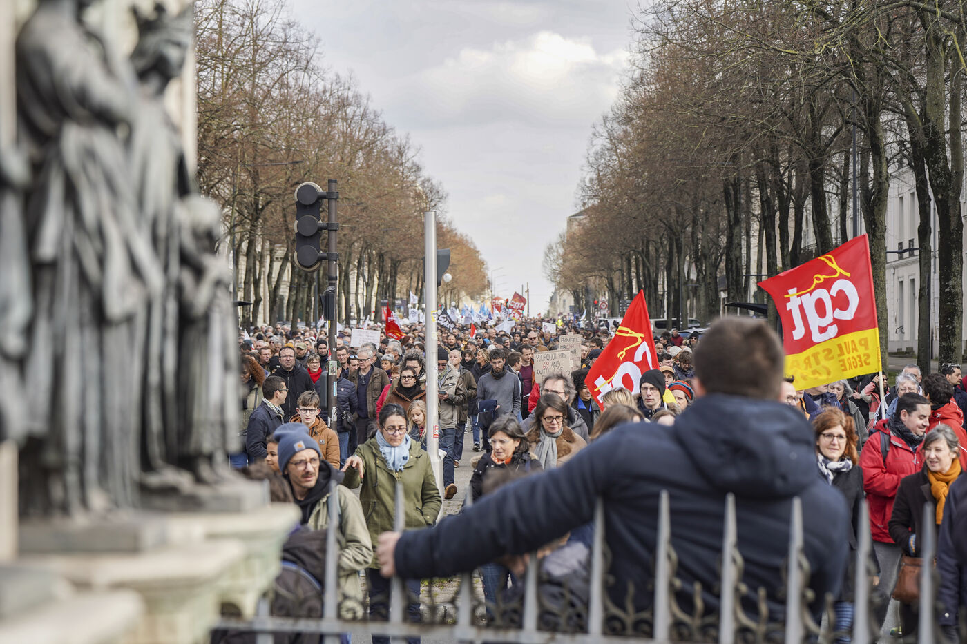 Tuesday 7 March 2023, sixth day of demonstrations in Angers (Maine-et-Loire prefecture) against the pension reform project. Nearly 19,000 people took to the streets, marking a very strong day of mobilisation against the government's bill.
