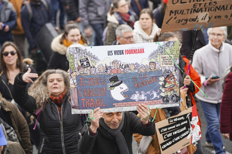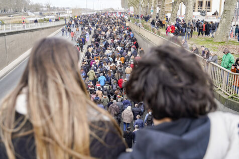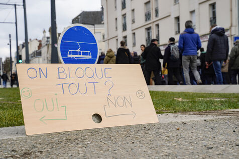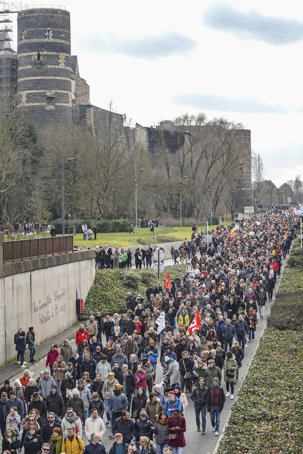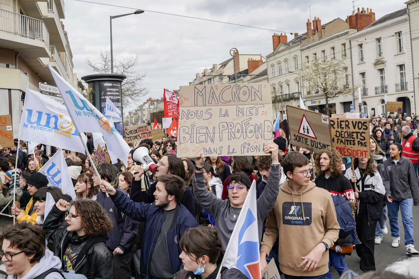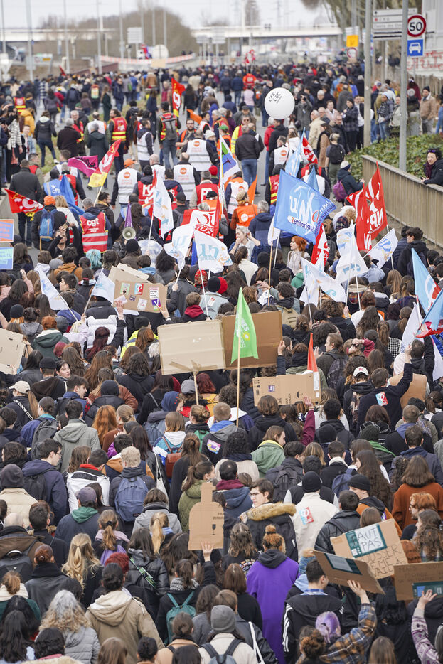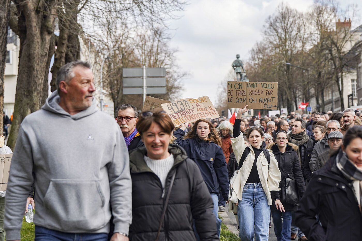Tuesday 7 March 2023, sixth day of demonstrations in Angers (Maine-et-Loire prefecture) against the pension reform project. Nearly 19,000 people took to the streets, marking a very strong day of mobilisation against the government's bill.