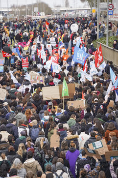 Mardi 7 mars 2023, sixième journée de manifestation à Angers (préfecture du Maine-et-Loire) contre le projet de réforme des retraites. Près de 19 000 personnes dans les rues, marquant ainsi une très forte journée de mobilisation contre le projet de loi du gouvernement.