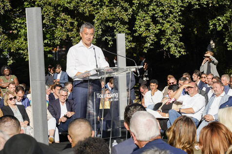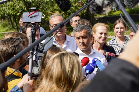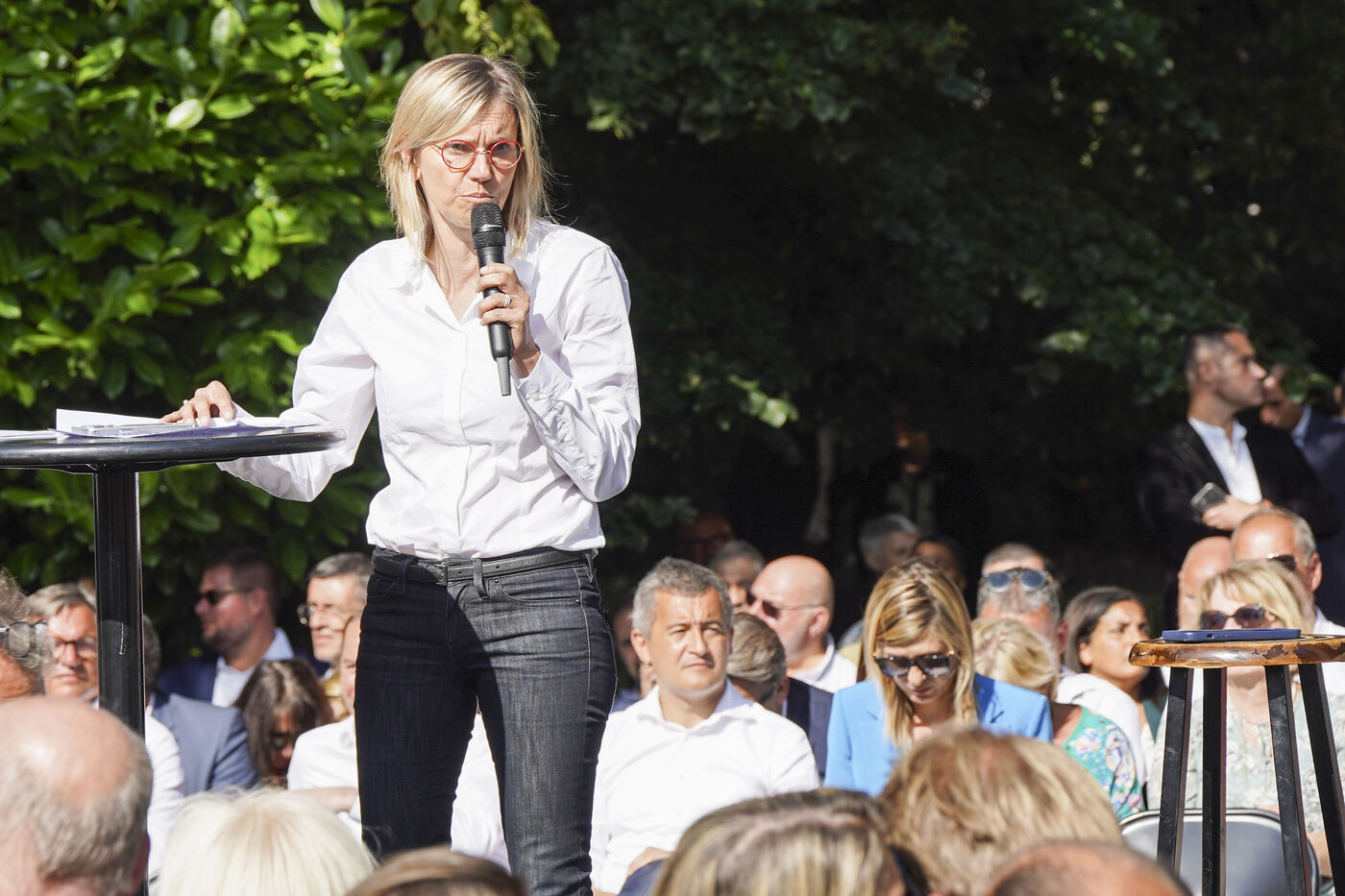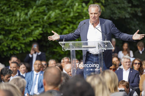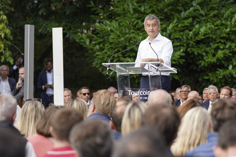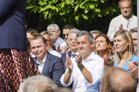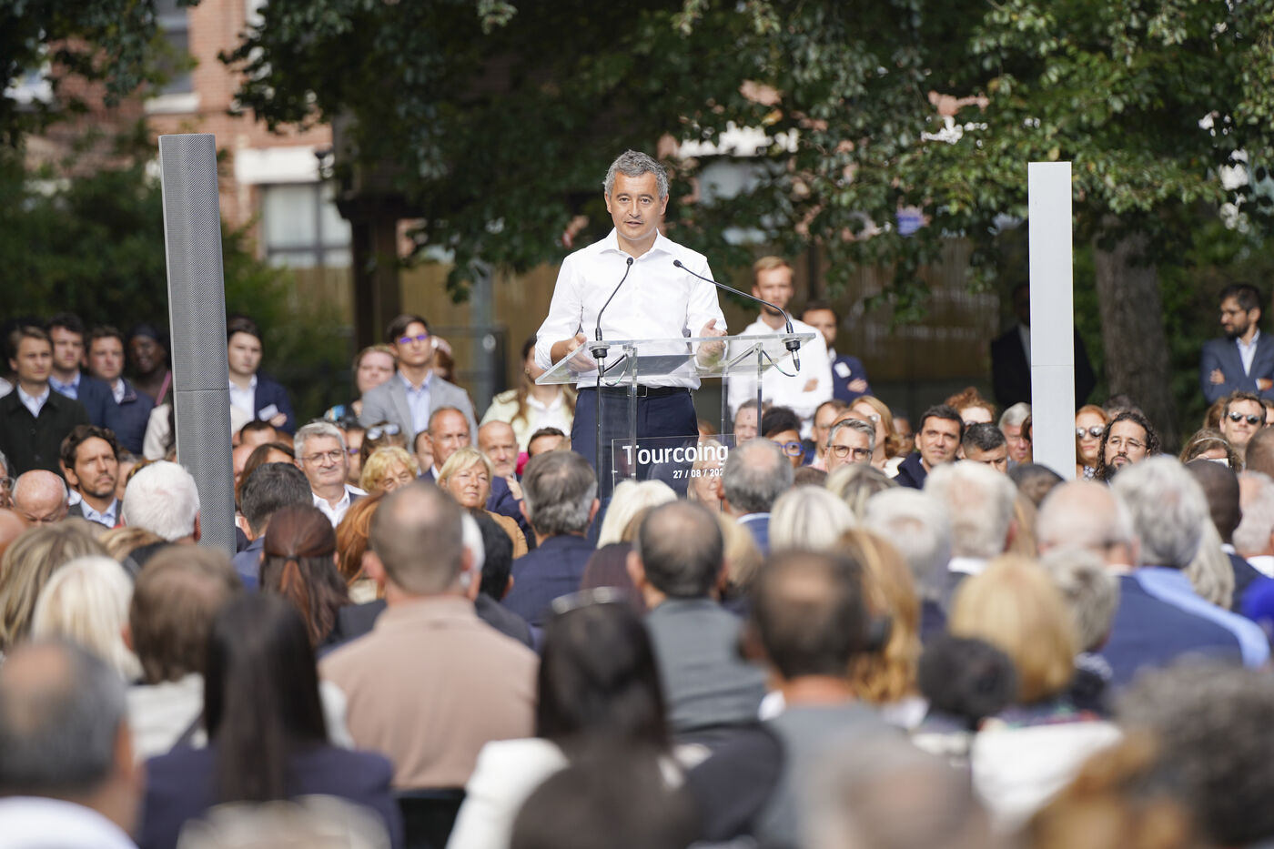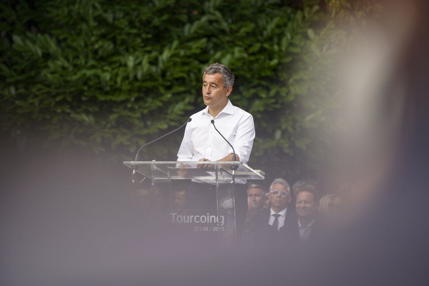 Gérald Darmanin, Minister of the Interior and Overseas France, returns to the political arena, on 27 August 2023. In the botanical gardens of the town of Tourcoing, around a thousand people, including eleven ministers and more than a hundred members of parliament, as well as national and local elected representatives and supporters, gathered at Gérald Darmanin's invitation to debate the theme of the working classes and their expectations.