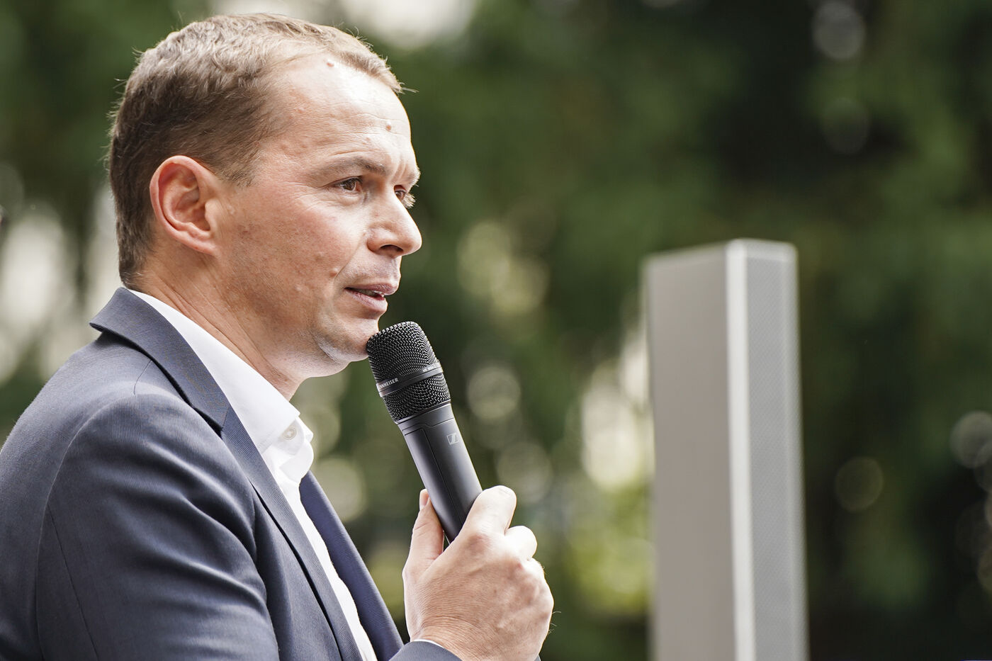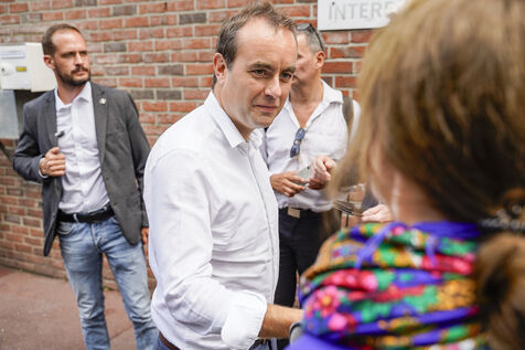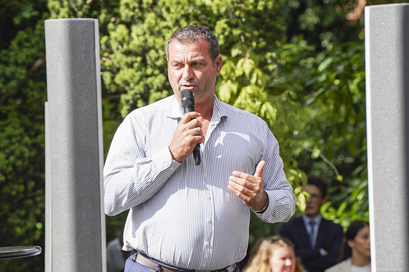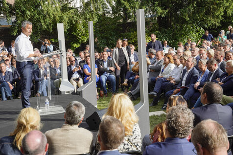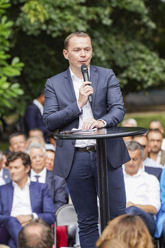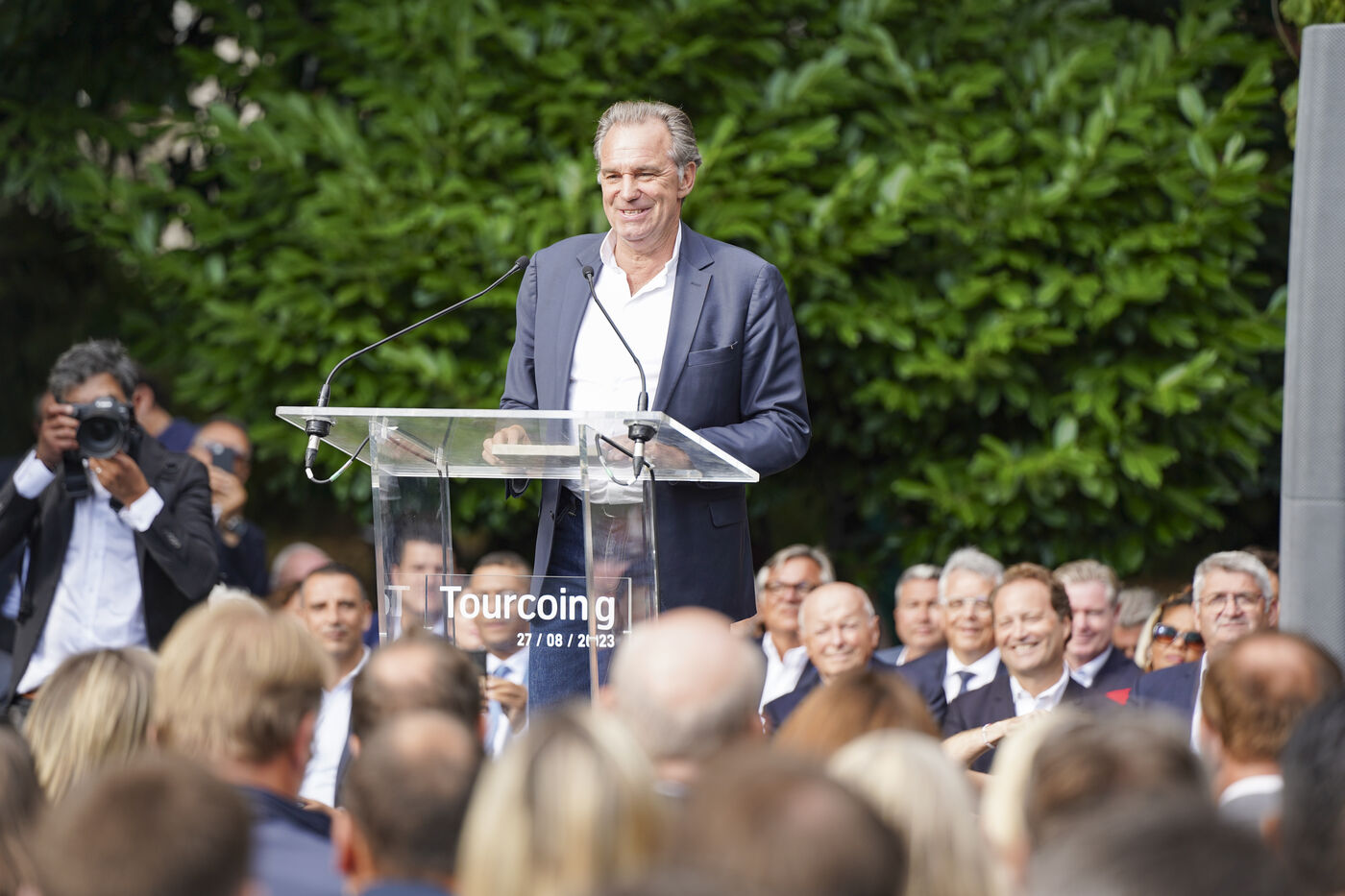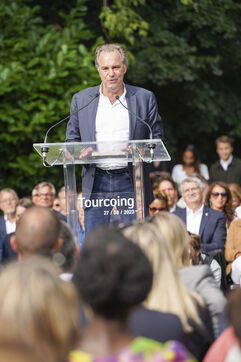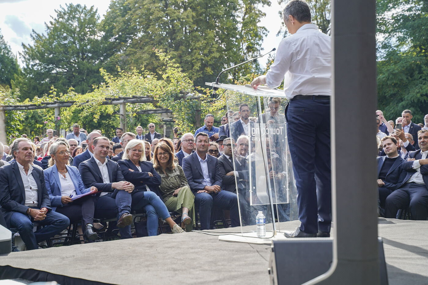 Gérald Darmanin, Minister of the Interior and Overseas France, returns to the political arena, on 27 August 2023. In the botanical gardens of the town of Tourcoing, around a thousand people, including eleven ministers and more than a hundred members of parliament, as well as national and local elected representatives and supporters, gathered at Gérald Darmanin's invitation to debate the theme of the working classes and their expectations.