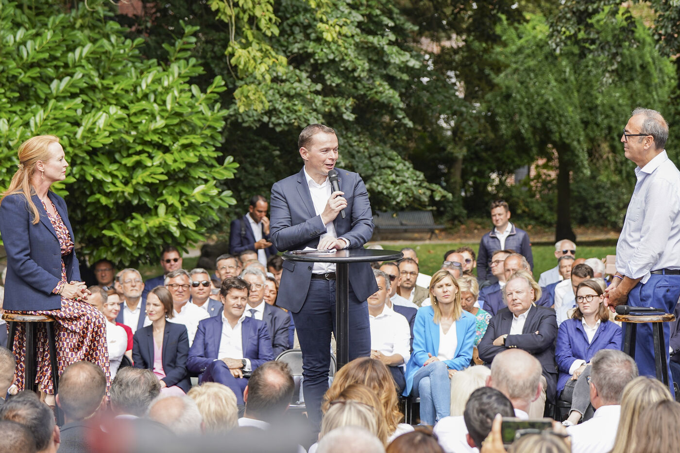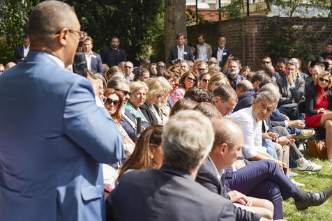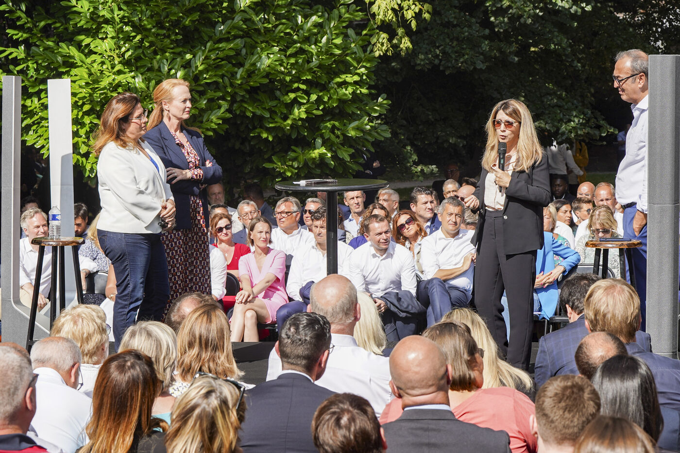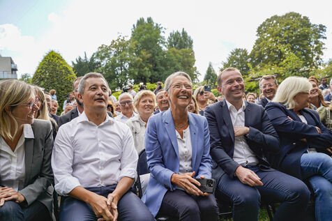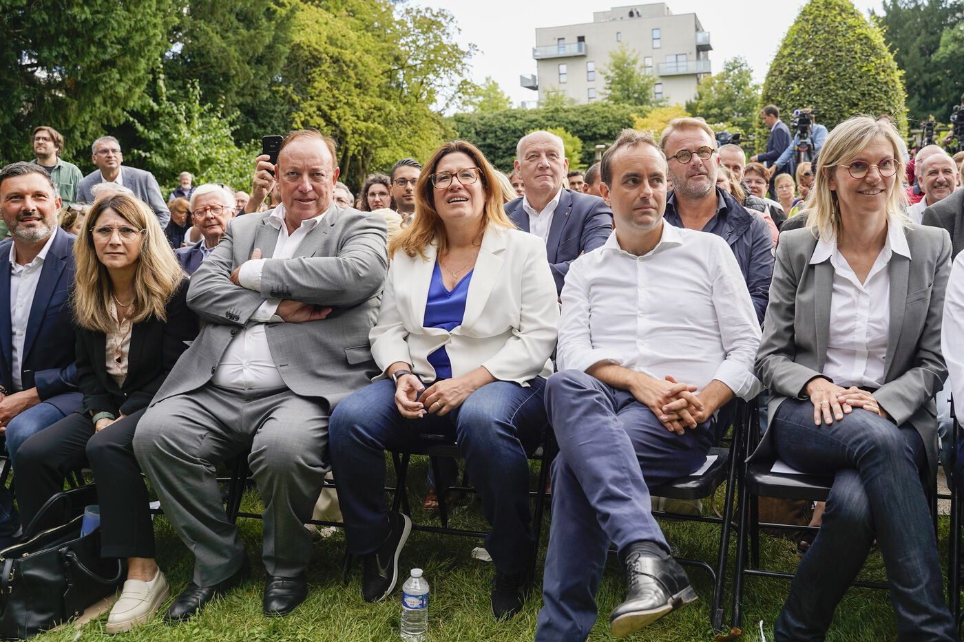 Rentrée politique de Gérald Darmanin, ministre de l'Intérieur et des Outre-mer, le 27 août 2023. Dans le jardin botanique de la ville de Tourcoing, environ mille personnes dont onze ministres et plus d'une centaine de parlementaires ainsi que élus nationaux, locaux et des sympathisants sont rassemblés à l'invitation de Gérald Darmanin pour débattre autour du thème des classes populaires et de leurs attentes.