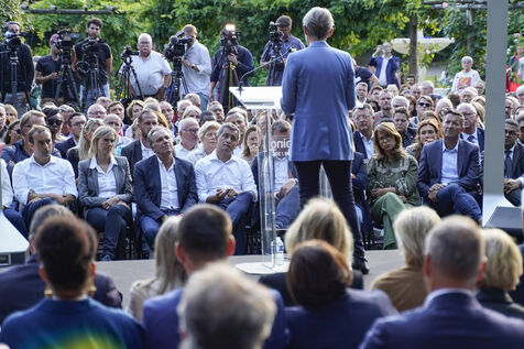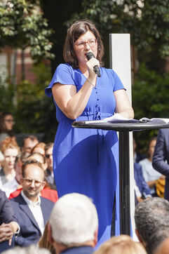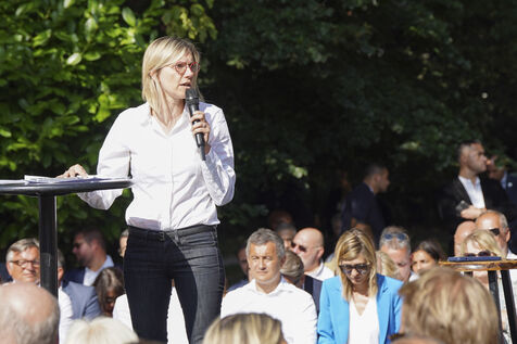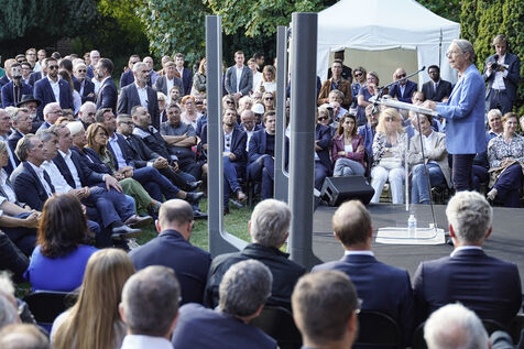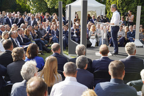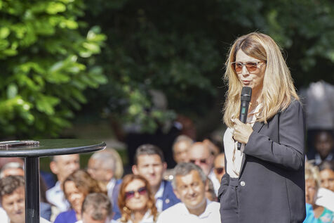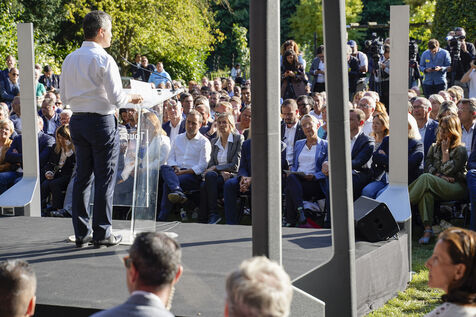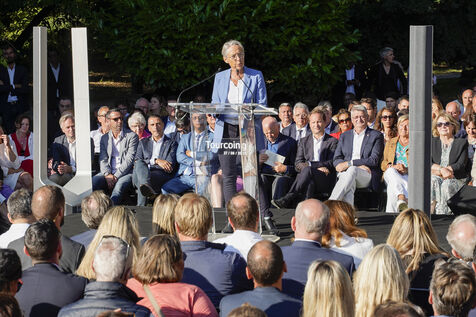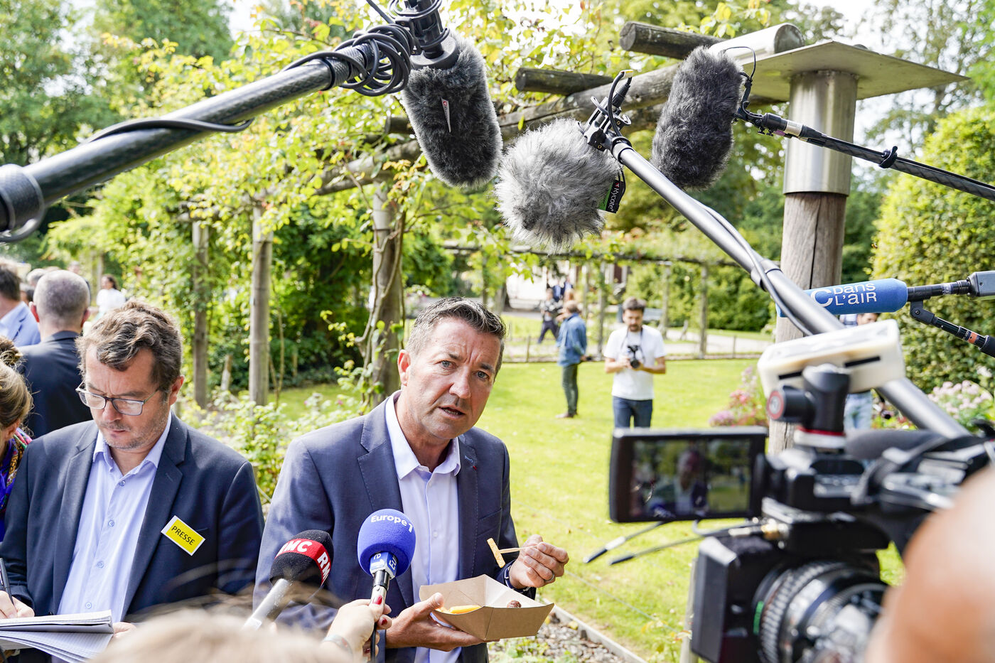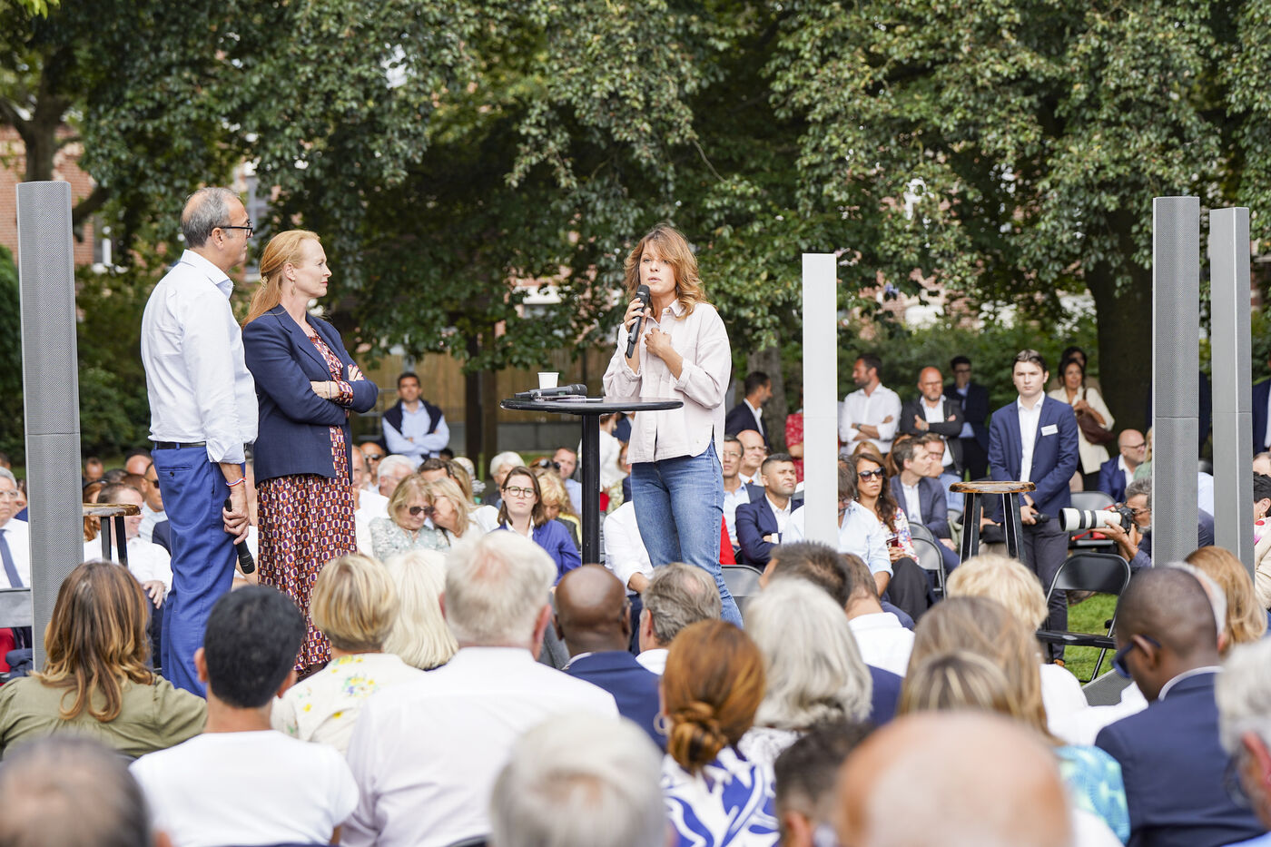 Rentrée politique de Gérald Darmanin, ministre de l'Intérieur et des Outre-mer, le 27 août 2023. Dans le jardin botanique de la ville de Tourcoing, environ mille personnes dont onze ministres et plus d'une centaine de parlementaires ainsi que élus nationaux, locaux et des sympathisants sont rassemblés à l'invitation de Gérald Darmanin pour débattre autour du thème des classes populaires et de leurs attentes.