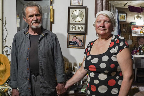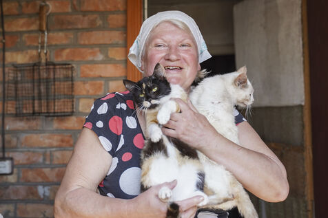 Lyubov, 63, and her husband Yuriy, 77, miraculously saved by the bombing of their house, live in this apocalyptic setting with 30 cats and 17 dogs, animals entrusted to them by their neighbours, who left in a hurry. With the help of NGOs and a generator from France, they manage to survive, despite the lack of electricity, gas and water.
