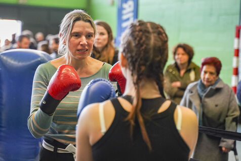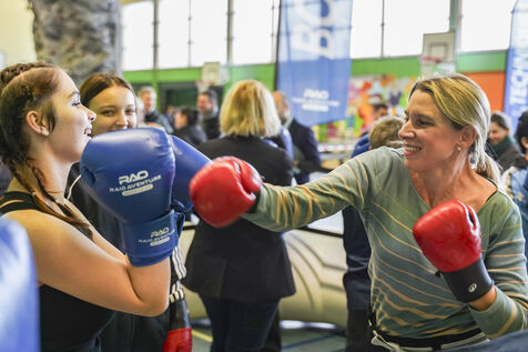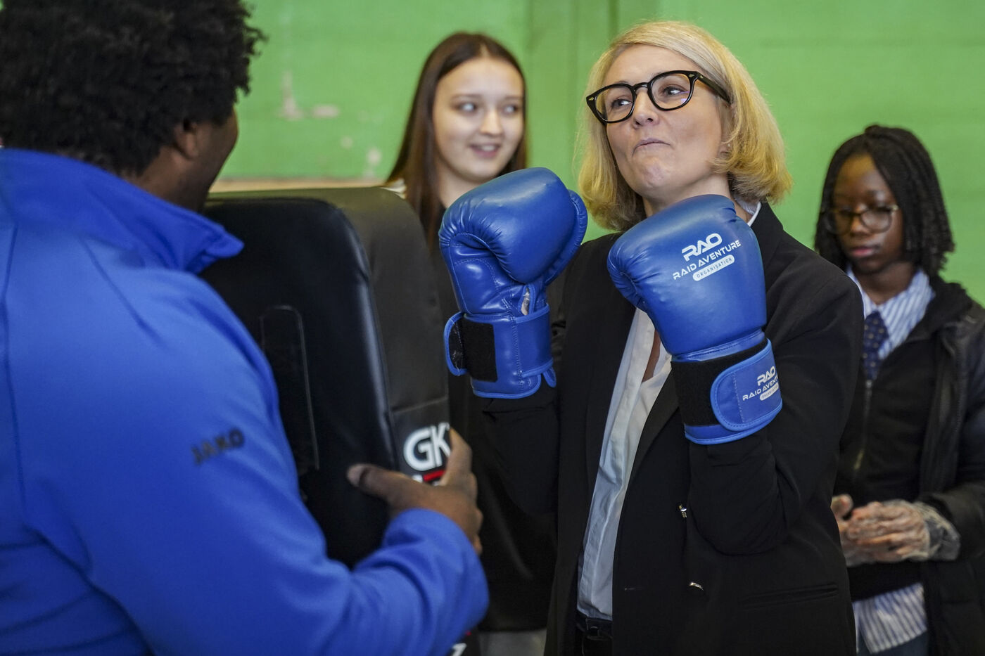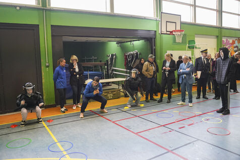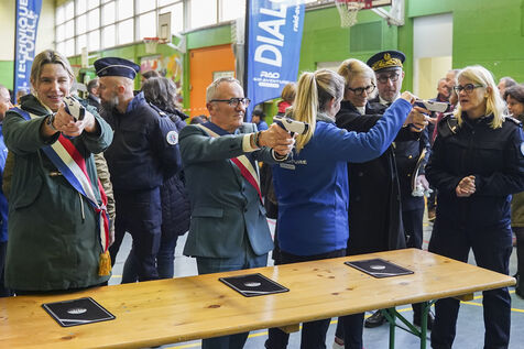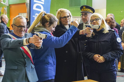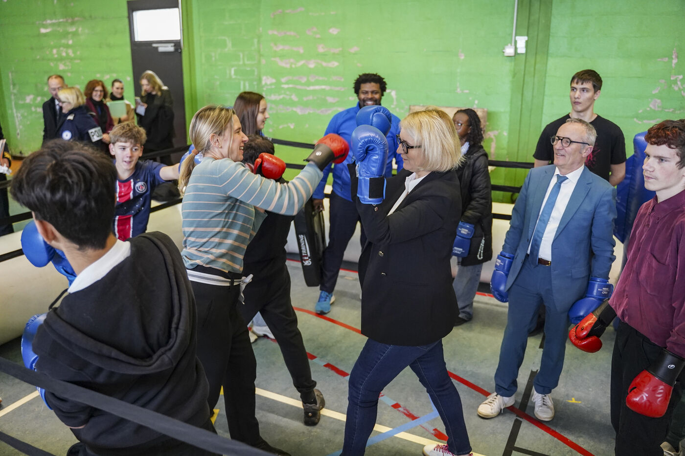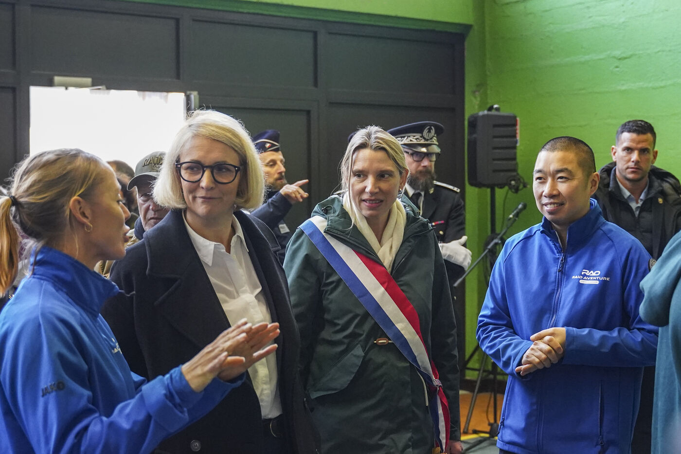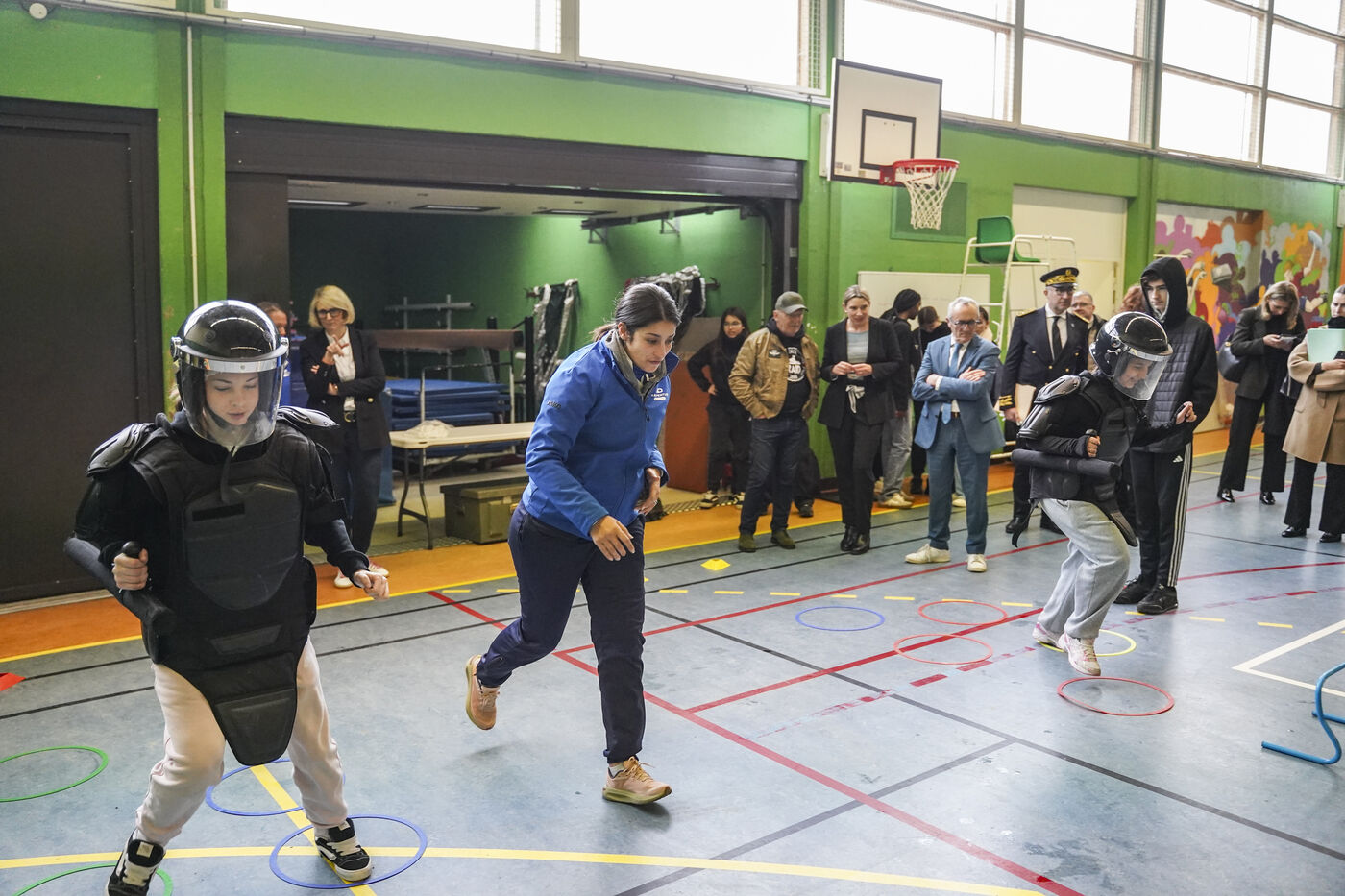 Visite de la ministre déléguée au ministre de l’Intérieur, Marie-Pierre Vedrenne, au Gymnase Claude Gouzy, dans le quartier du Chemin Vert à Saumur, à l’occasion du premier Prox’Raid Aventures. Un événement organisait par l’association « Raid Aventure Organisation » visant à recréer du lien entre la police et la population. L’occasion pour les collégiens d’échanger avec les forces de l’ordre et de découvrir leur métier et leur quotidien au travers d’ateliers (tir laser, boxe, police technique et scientifique, espace de dialogue sur la vision et le vécu avec la police, escalade pour le dépassement de soi, prévention aux addictions, parcours d’obstacles en tenue de maintien de l’ordre, atelier de secourisme).