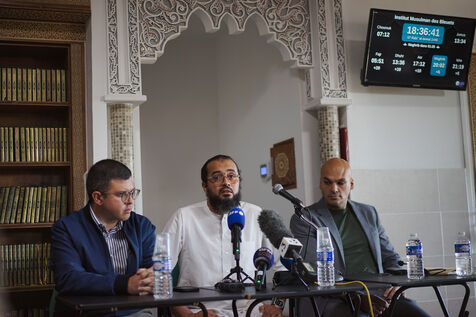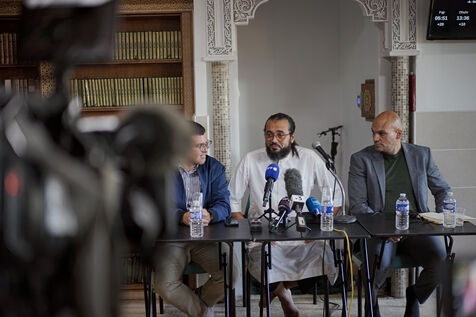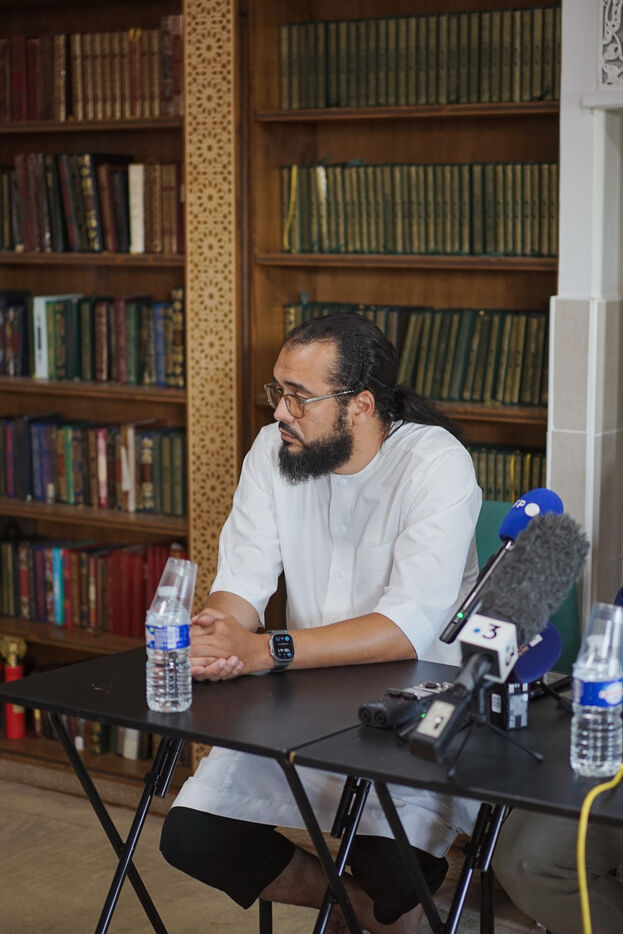 Imam Ismail, Smaïn Bendjilali of his real name at a press conference held at the Myrtille mosque in Marseille following the accusation of terrorism following an online post denouncing military operations in Gaza. On Friday, May 30, he was sentenced to six months' suspended prison term for “apologia du terrorisme”. He shared a video on social media that called the October 7 attack in Israel “self-defense”.