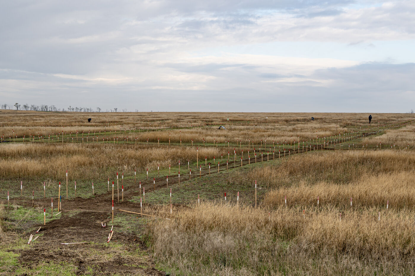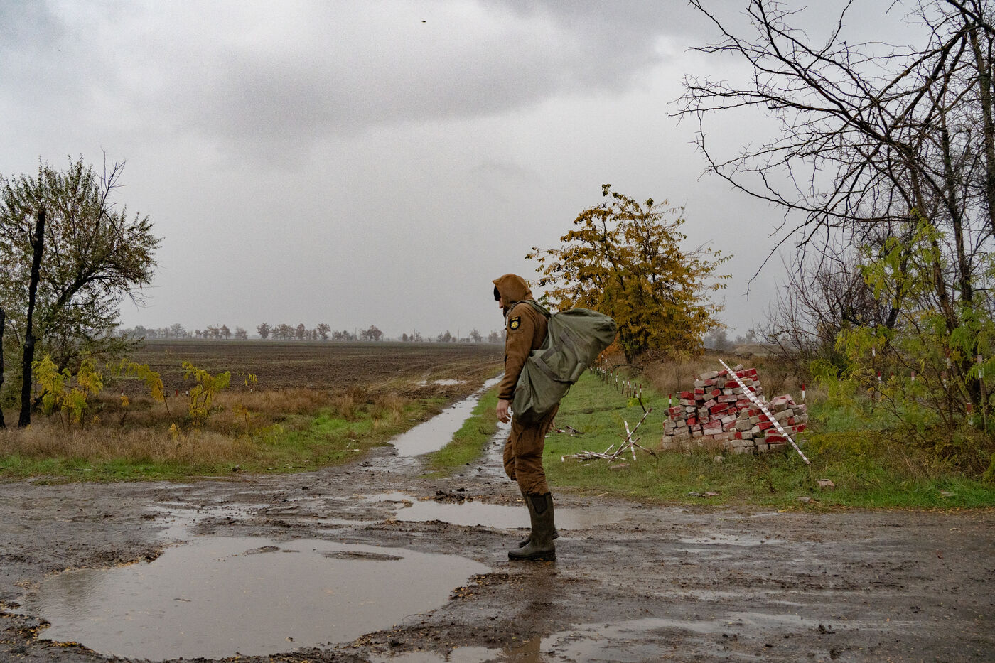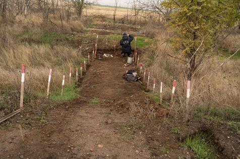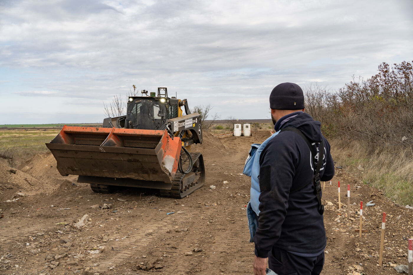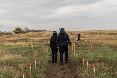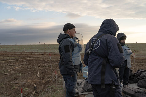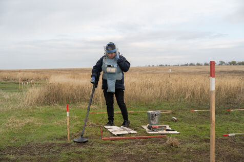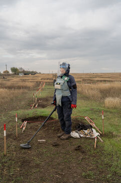 Andrei, responsable de terrain de l'ONG HALO Trust pour Novopetrivska, Yevhenivka et Snihurivka (villages où passait la frontière en 2022), rapporte qu'environ 15 000 mines et munitions non explosées ont été neutralisées dans la région de Mykolaïv par l'ONG. Au 15 mars 2025, plus de 70 000 engins avaient été détruits et 26 000 hectares libérés dans la région.