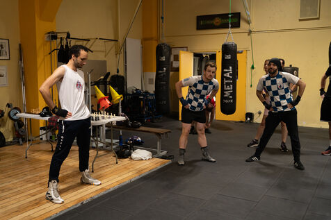 Jean-Yves Marty lors d'un entrainement de chess-boxing a Paris, en France, le 20 decembre 2025. Jean-Yves Marty est un chessboxeur francais qui a remporte le titre de champion du monde dans la categorie des moins de 65 kg lors des Championnats du monde de chess-boxing 2025, demontrant ainsi un haut niveau de performance tant aux echecs qu'en boxe.