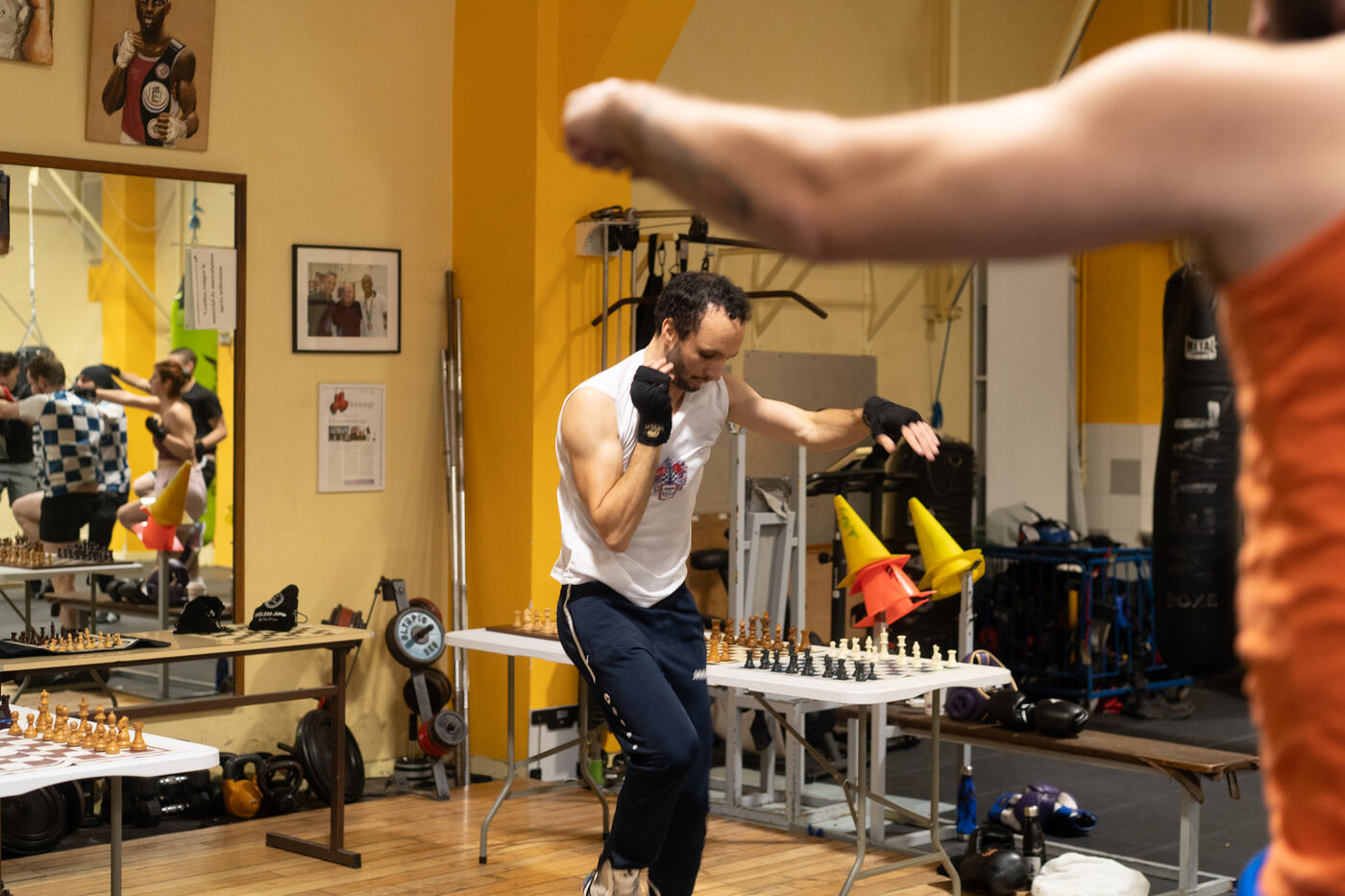Jean-Yves Marty during a training of chess-boxing in Paris in France in December 20, 2025. Jean-Yves Marty is a French chessboxer who won the world championship title in the under-65 kg weight category at the 2025 World Chessboxing Championships, demonstrating high-level performance in both chess and boxing