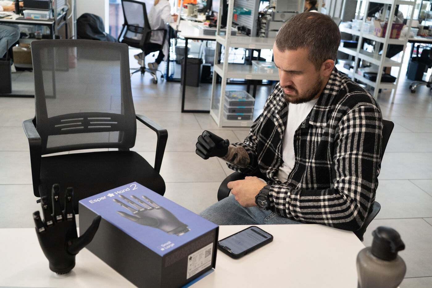 Gennadij, 28 ans, a perdu sa main droite le 25 février 2023, alors qu’il participait à une opération militaire, après qu’une explosion a frappé le véhicule dans lequel il se trouvait. À partir de ce moment, il a dû reconstruire non seulement sa mobilité, mais aussi son identité au quotidien. Il a pu bénéficier d’une prothèse fournie par Esper Bionics, l’entreprise qui a développé l’Esper Hand, une main bionique guidée par l’intelligence artificielle : des capteurs EMG détectent les signaux musculaires résiduels, l’IA apprend les gestes de l’utilisateur et anticipe les mouvements, permettant des gestes plus naturels et fluides.