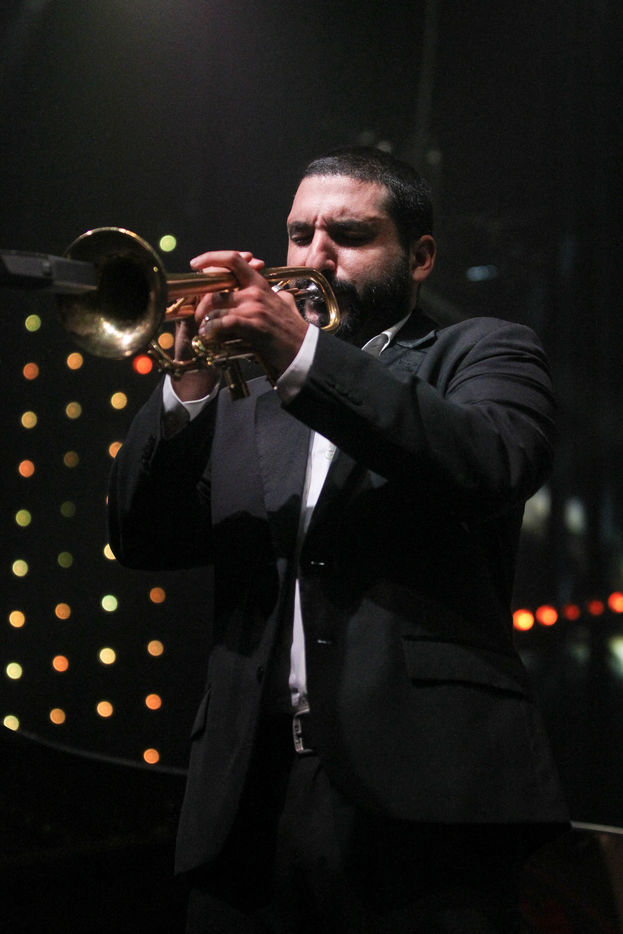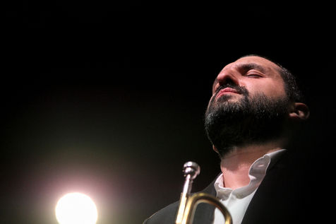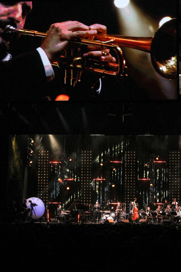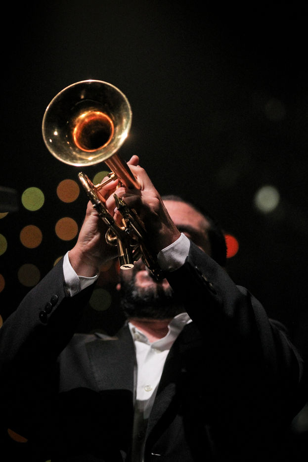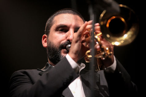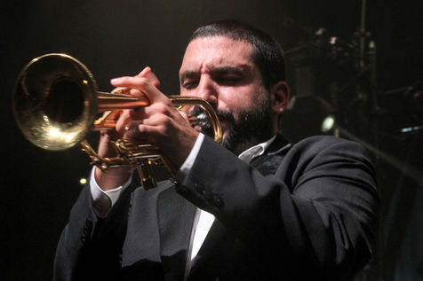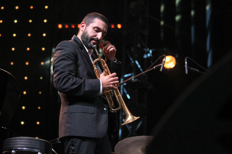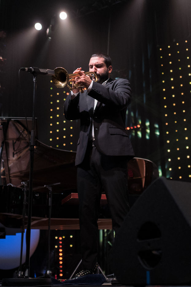 Ibrahim Maalouf sous le chapiteau pendant son concert lors du 40 ème festival de Jazz in Marciac. Ibrahim Maalouf est un trompettiste et pianiste Franco-libanais, également compositeur notamment de musiques de films, arrangeur, producteur professeur de trompette.
