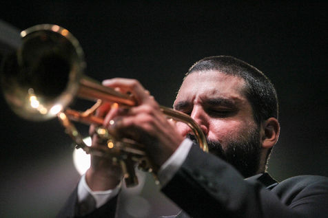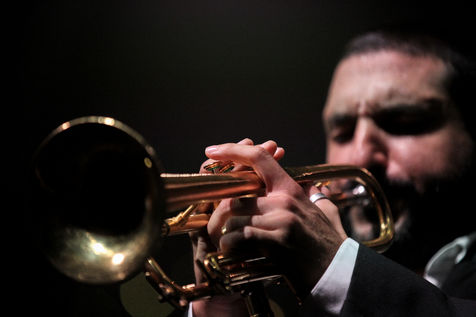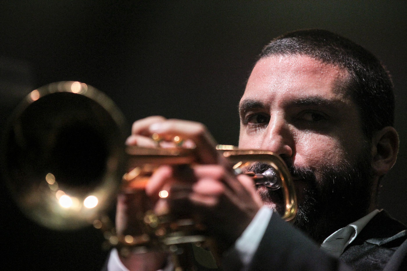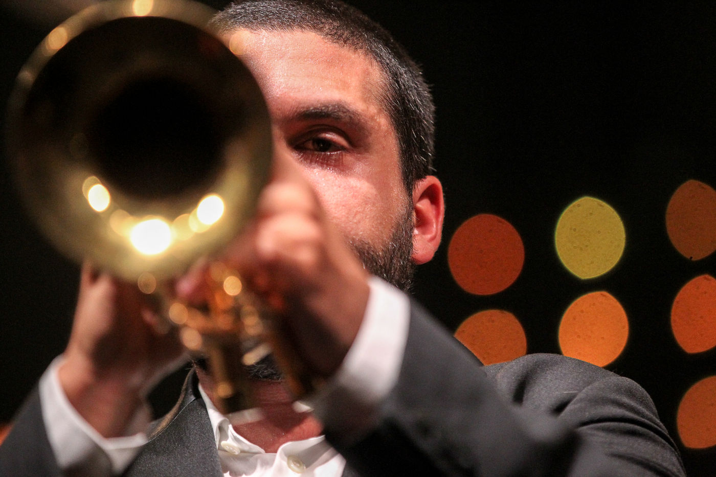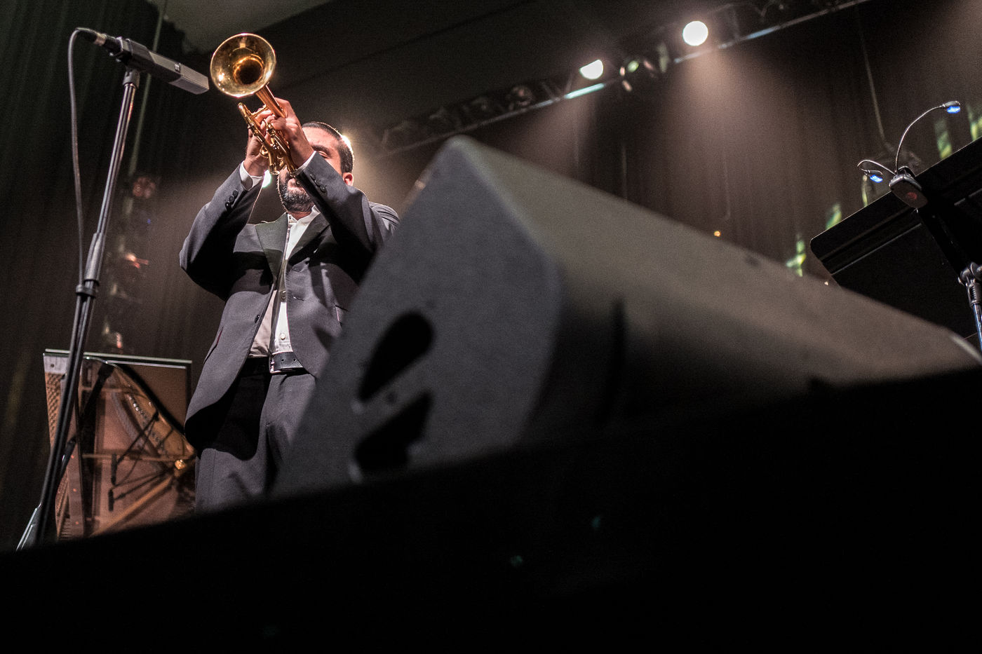 Ibrahim Maalouf sous le chapiteau pendant son concert lors du 40 ème festival de Jazz in Marciac. Ibrahim Maalouf est un trompettiste et pianiste Franco-libanais, également compositeur notamment de musiques de films, arrangeur, producteur professeur de trompette.