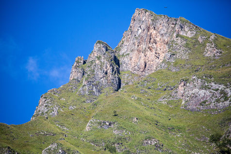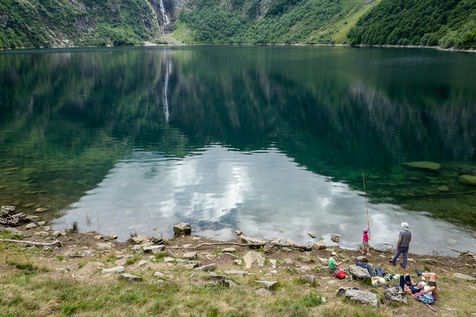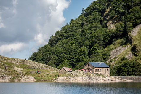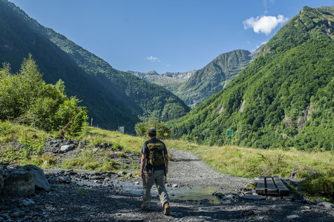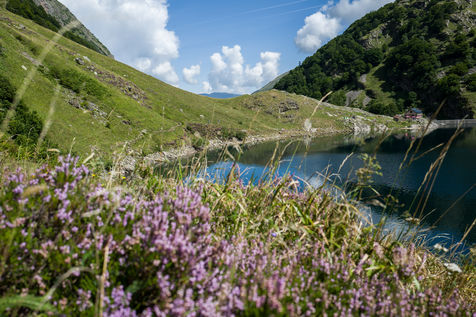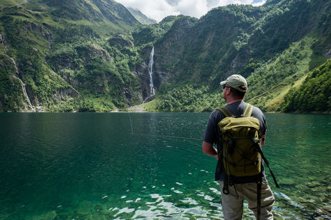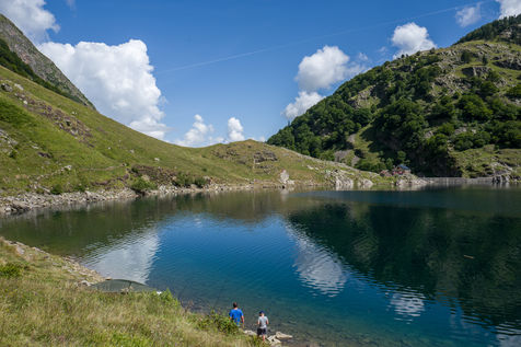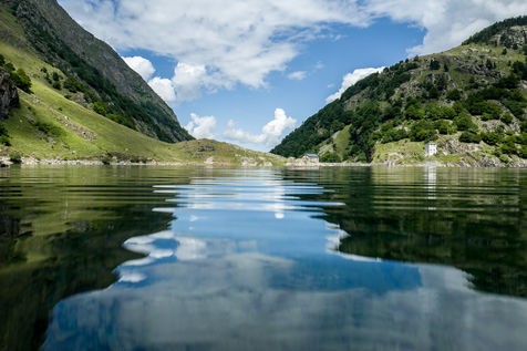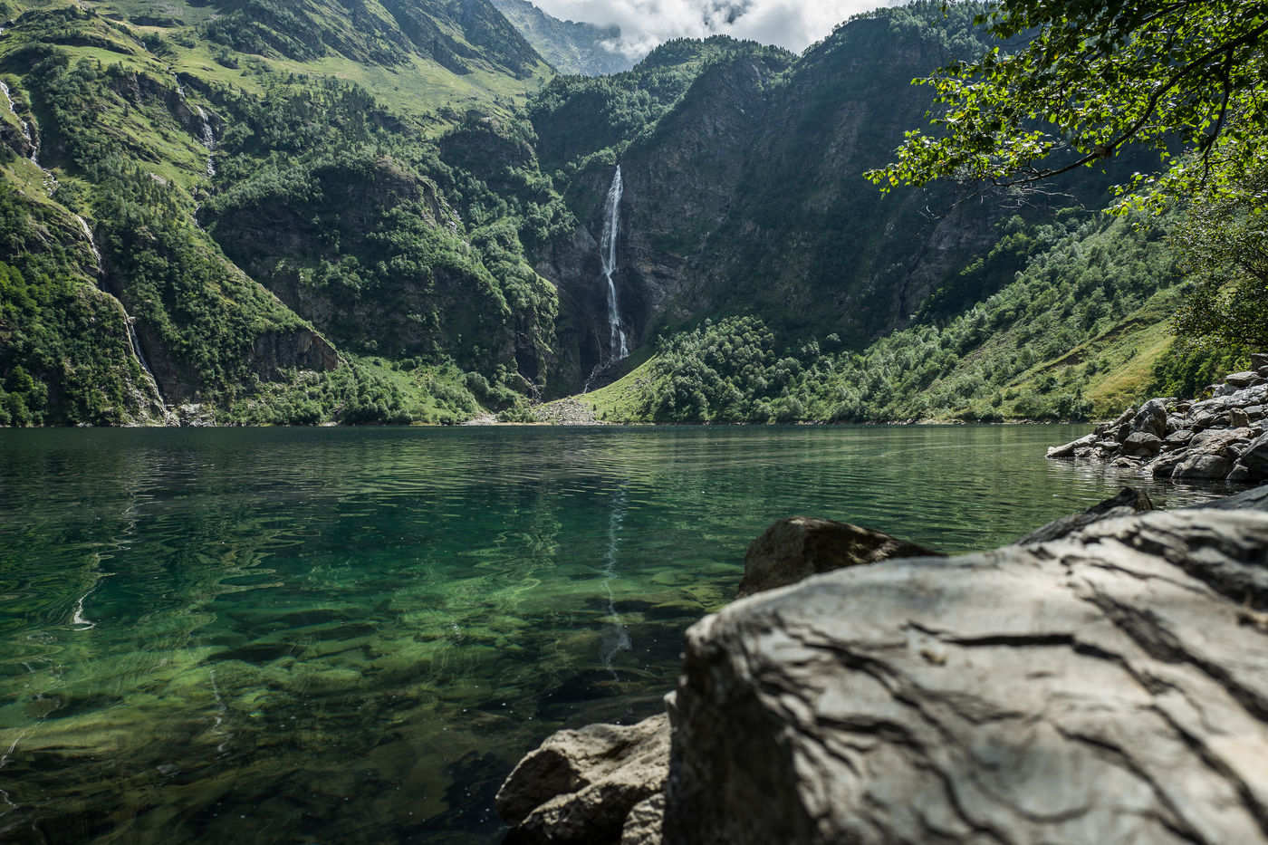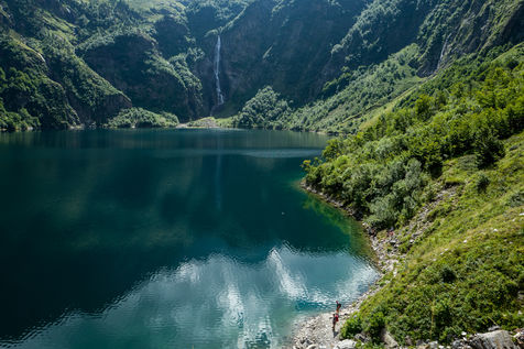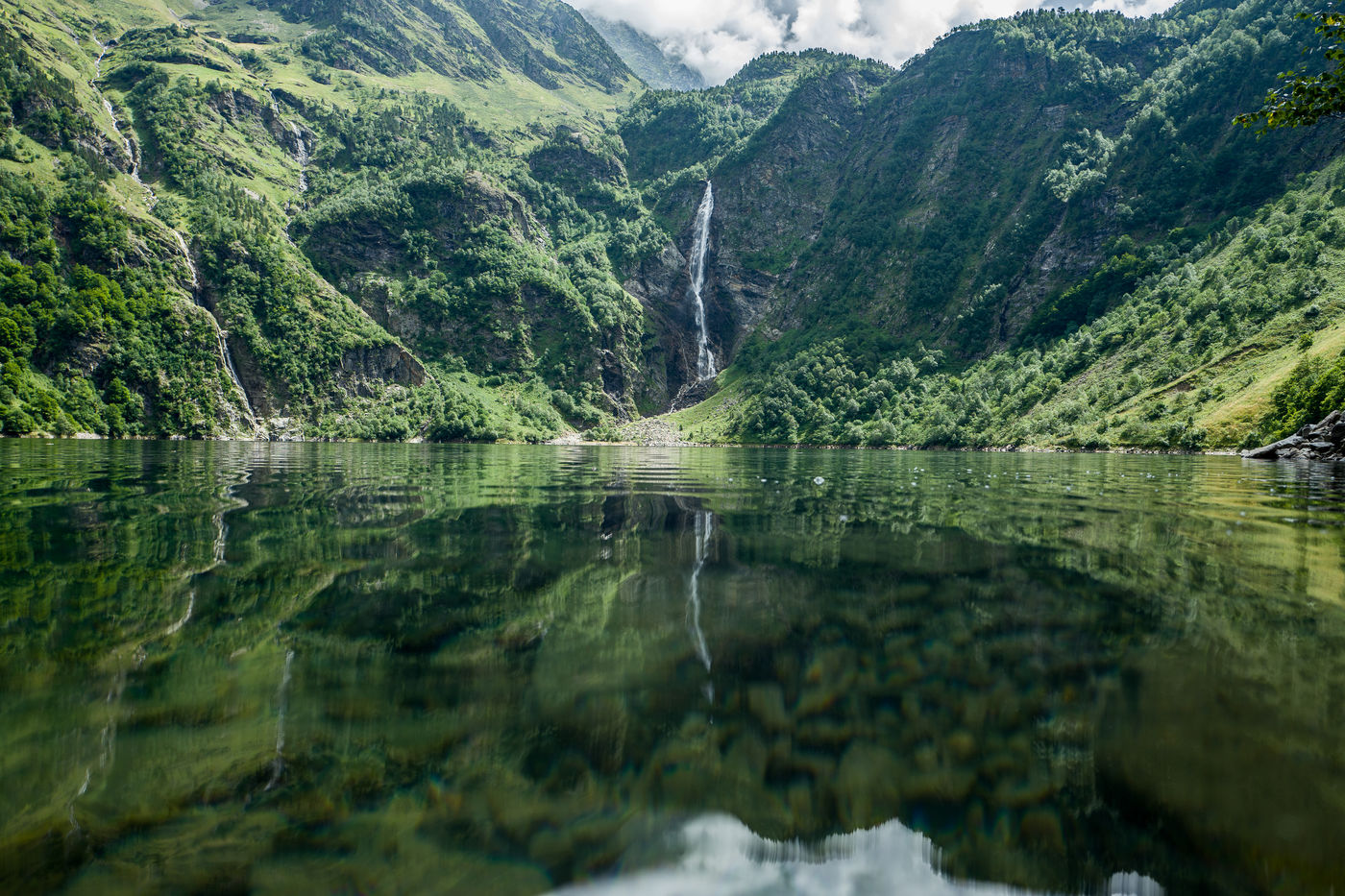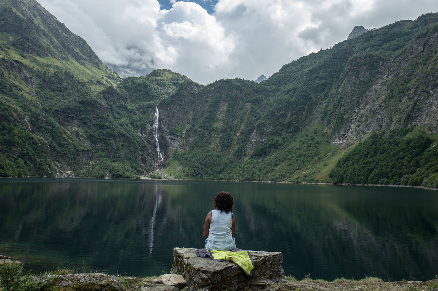 Le lac d'Oô situé à une altitude de 1 507 m est un haut lieu de balade pyrénéenne. Une des attractions est sa cascade de 275 m et le refuge auberge offre un service d'hébergement et de restauration. La montée au lac se fait par le sentier GR 10 et dure environ une heure. 28 août 2019, Oô, France. 28 août 2019, Oô, France.