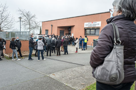 Des personnes de plus de 50 ans viennent se faire vacciner dans un centre de vaccination pour lutter contre l'épidémie du Coronavirus, Covid19.