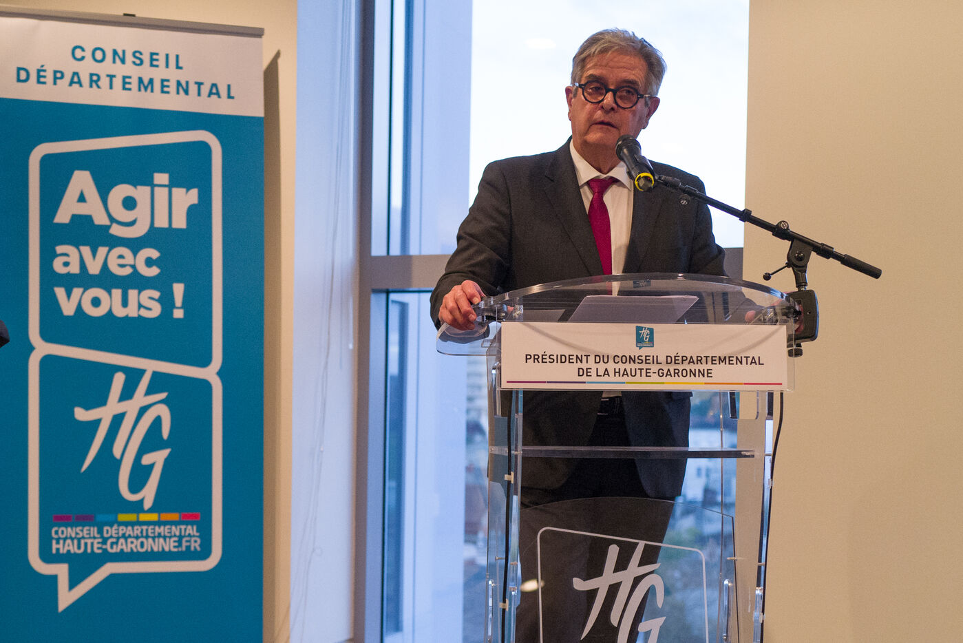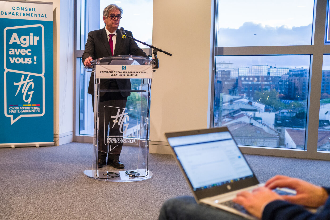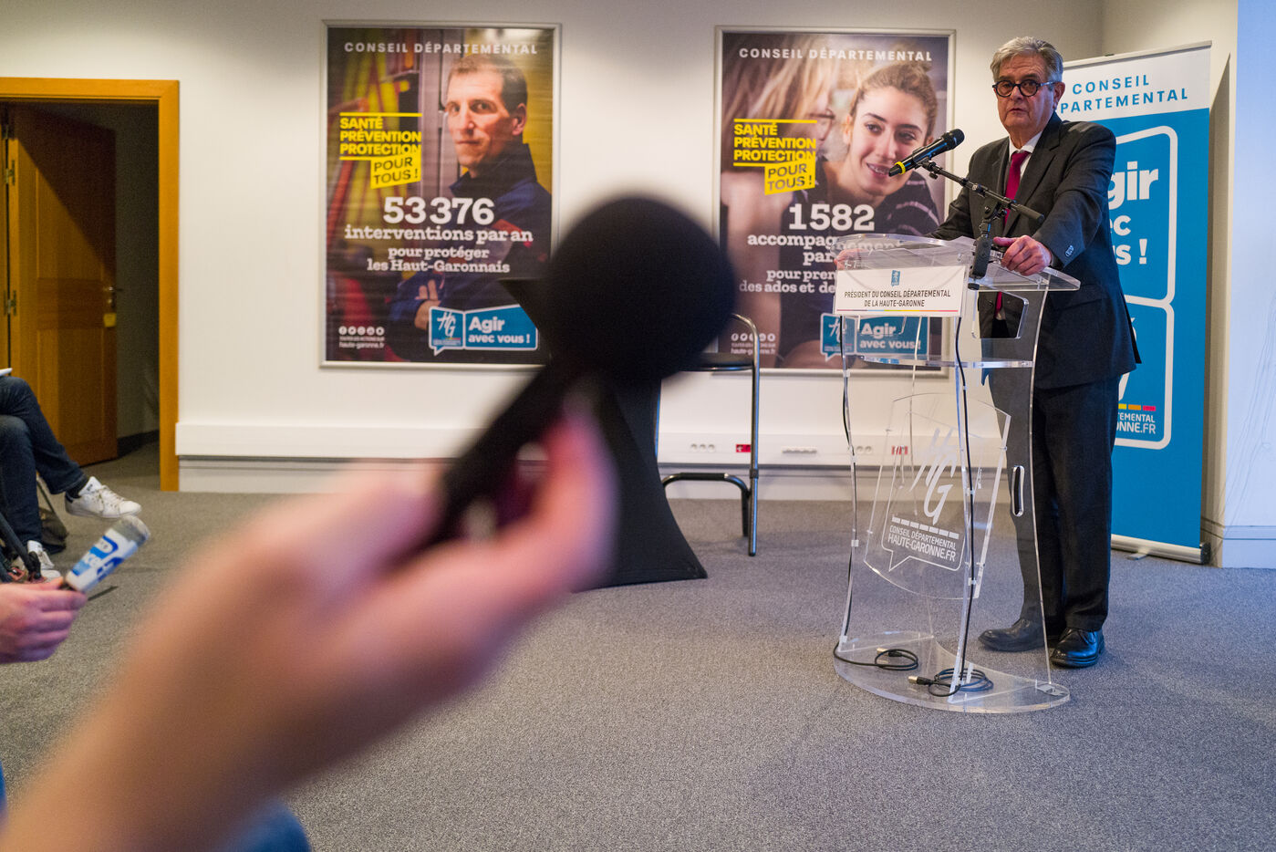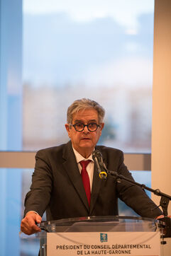 Georges Meric President PS, Parti Socialiste, du département de la Haute Garonne annonce son depart du Conseil Departemental lors d une conference de presse.