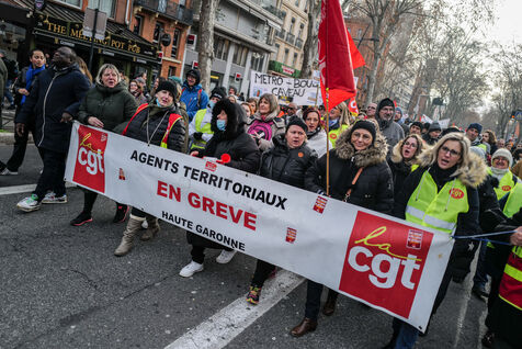 A l appel de tous les syndicats, entre 36.000 et 50.000 personnes ont defile dans le centre ville de Toulouse dans le sud de la France pour protester contre la reforme des retraites prevue par le gouvernement de la premiere ministre Elisabeth Borne.