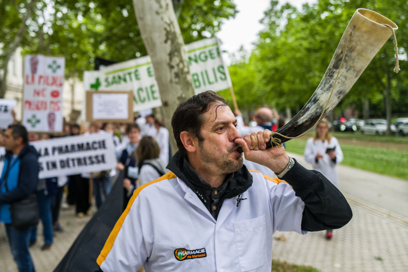 Manifestation des pharmaciens, les syndicats des pharmaciens d officine ont lance un mouvement national de greve pour la journée du 30 mai 2024, ils reclament une revalorisation financiere et protestent contre les penuries de medicaments et s inquietent de rumeurs de deregulation du reseau officinal.
