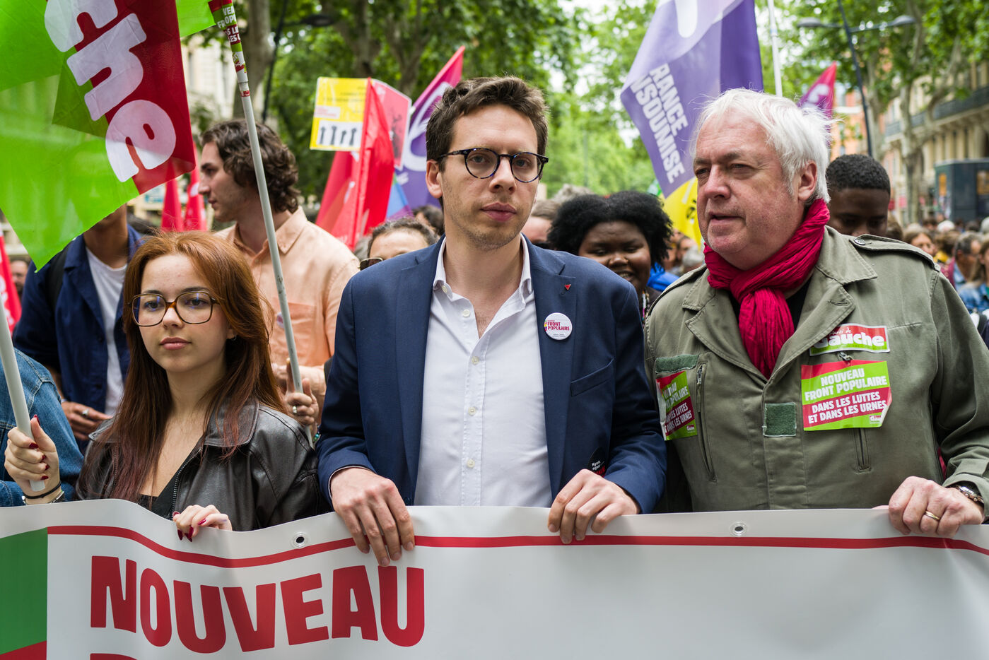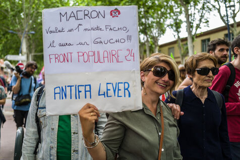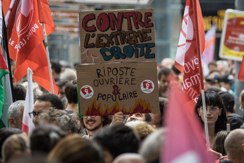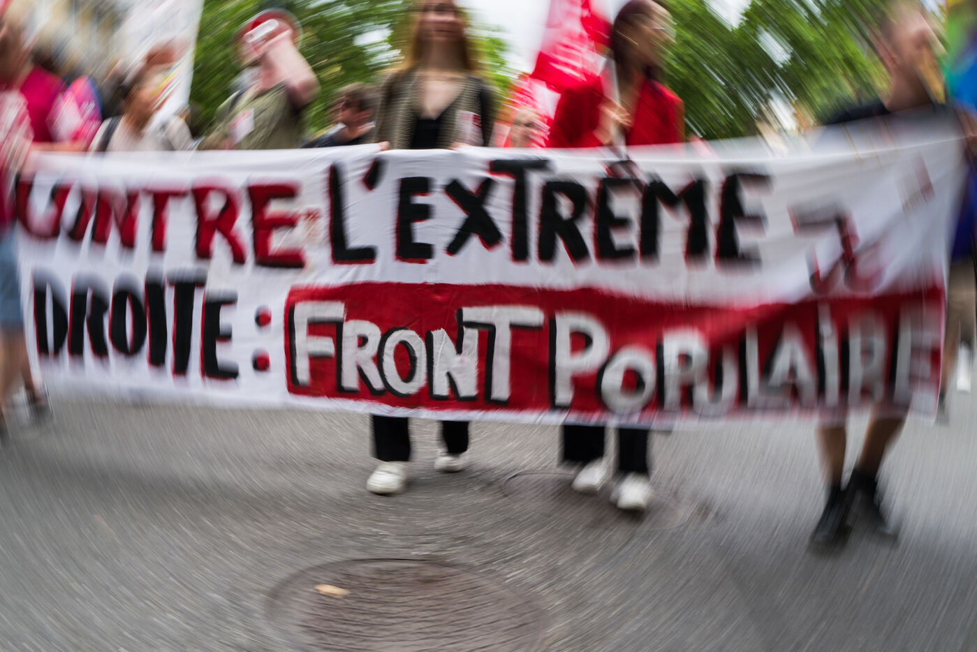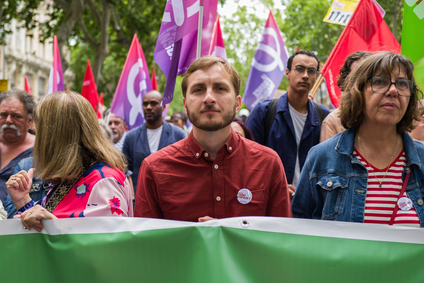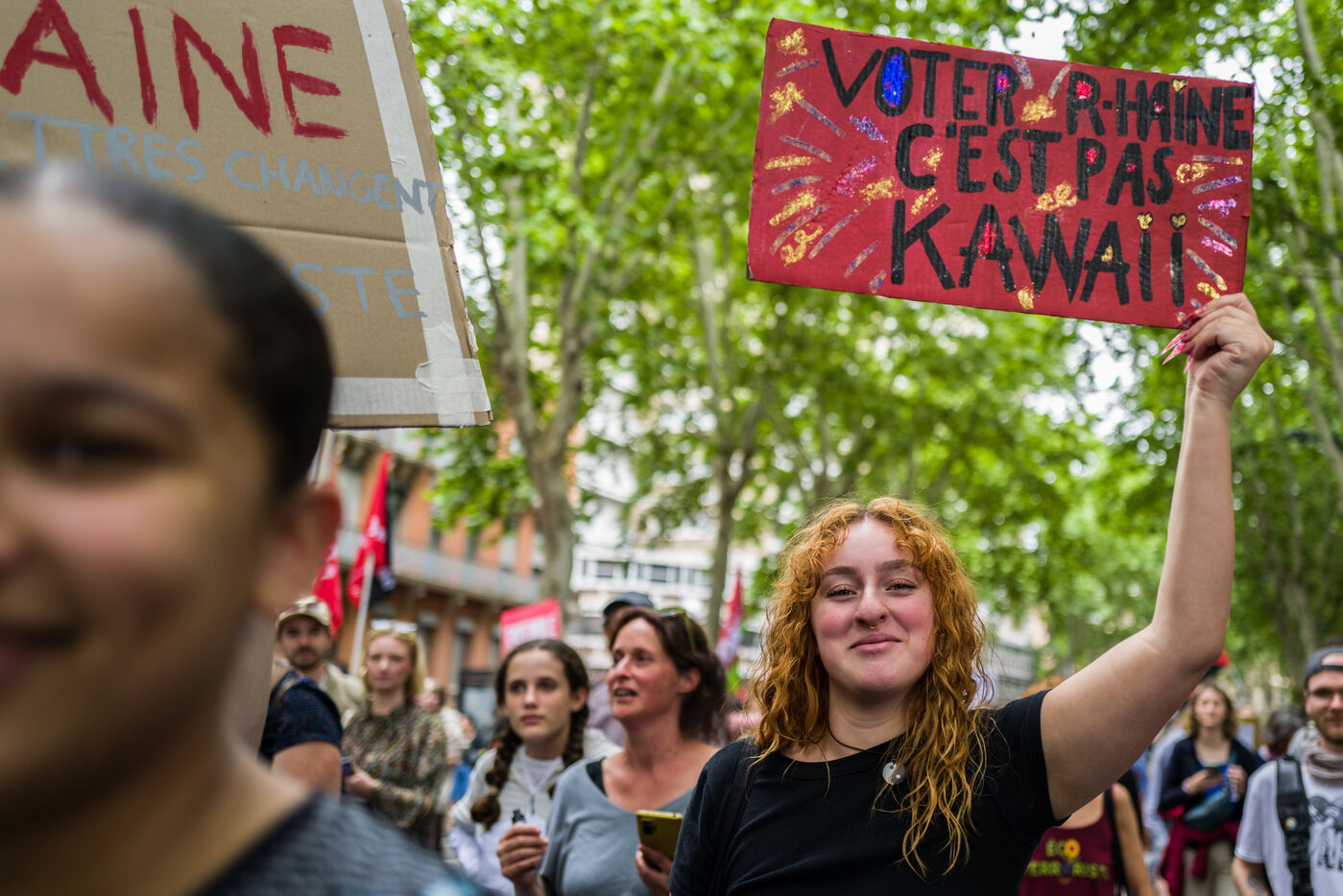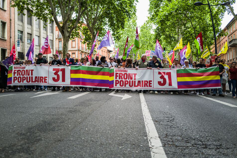 France, Toulouse, 2024-06-15. At the call of several unions, but also left-wing political parties and citizen associations, many people demonstrated in the city center of Toulouse against the extreme right and the political party Rassemblement National, RN, before the legislative elections scheduled in a few weeks In France.