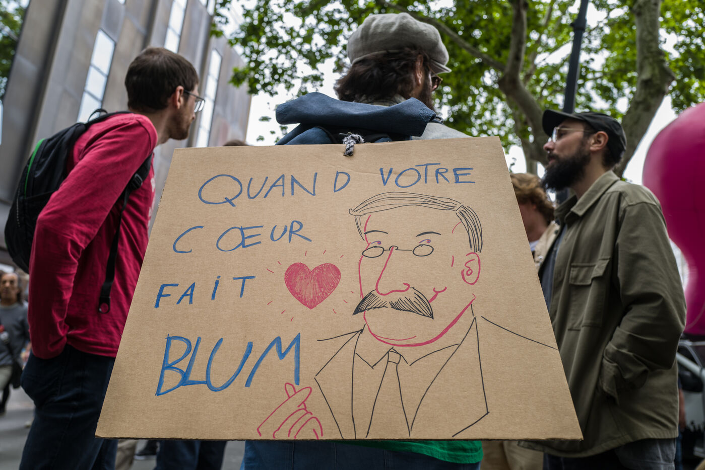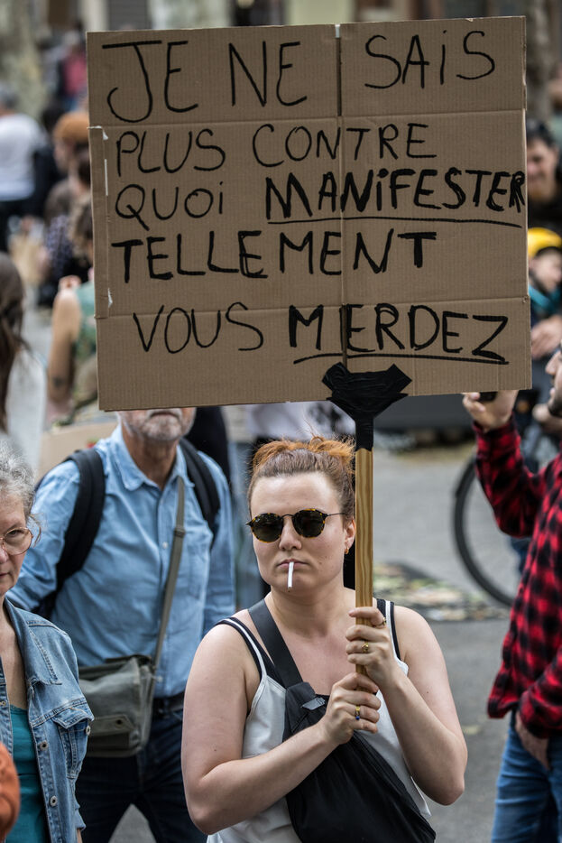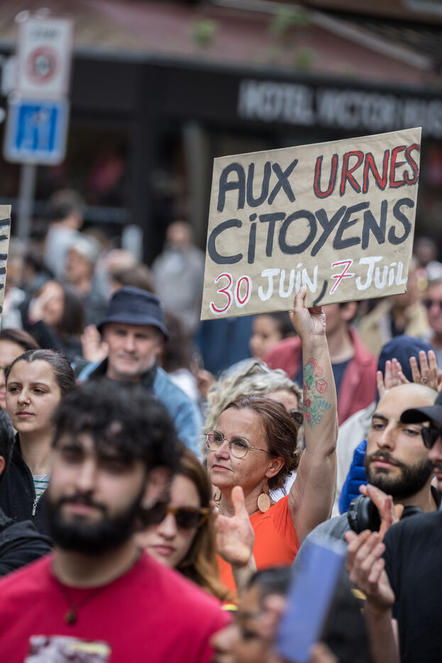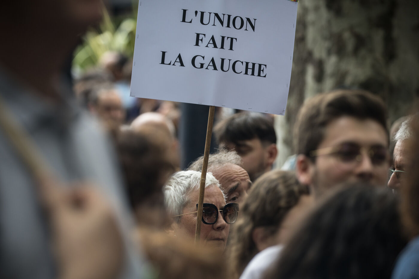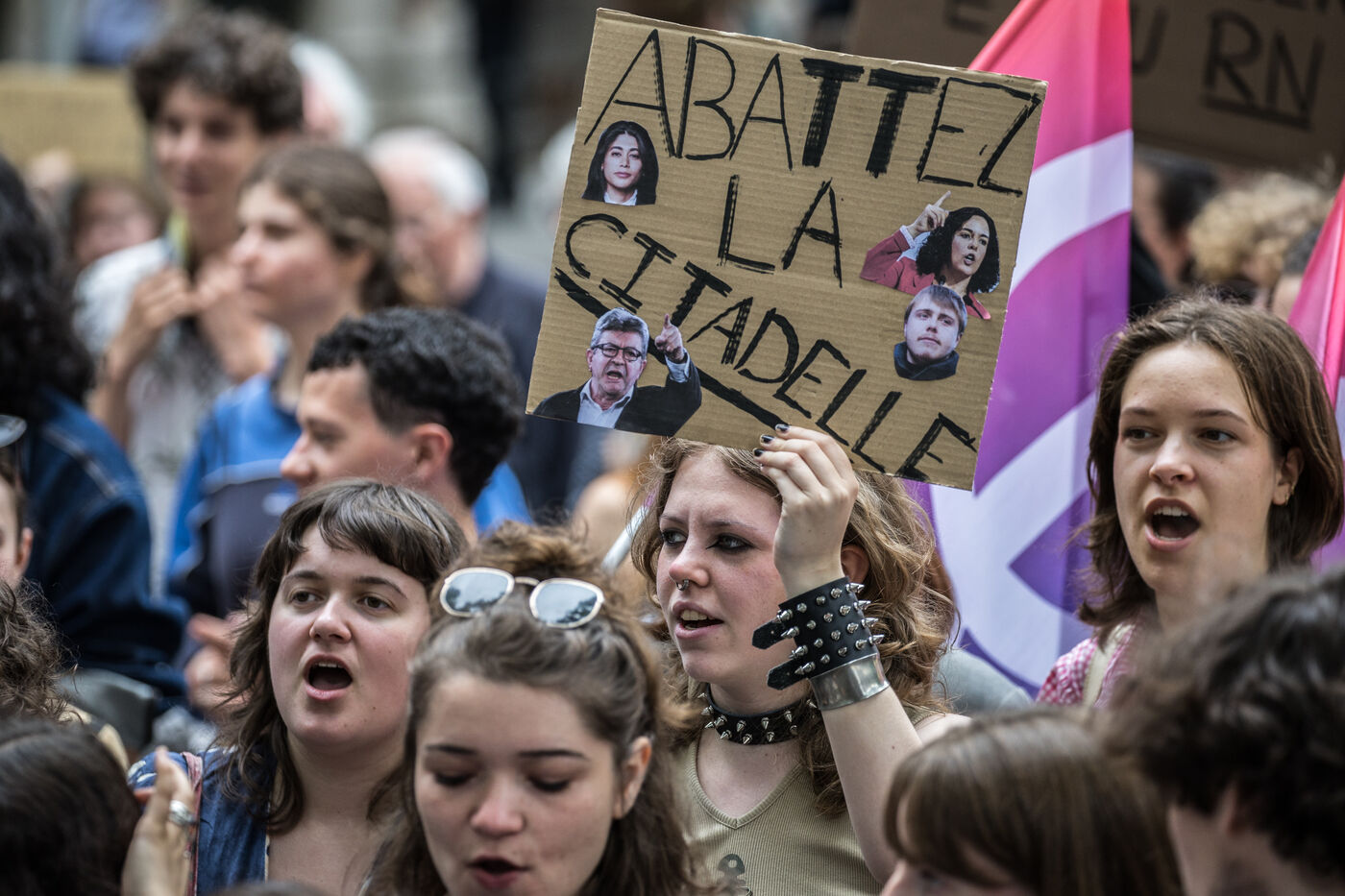 France, Toulouse, 2024-06-15. At the call of several unions, but also left-wing political parties and citizen associations, many people demonstrated in the city center of Toulouse against the extreme right and the political party Rassemblement National, RN, before the legislative elections scheduled in a few weeks In France.