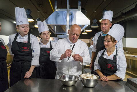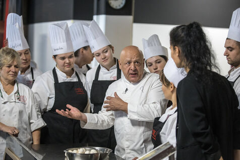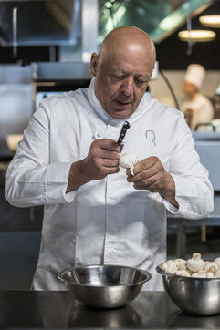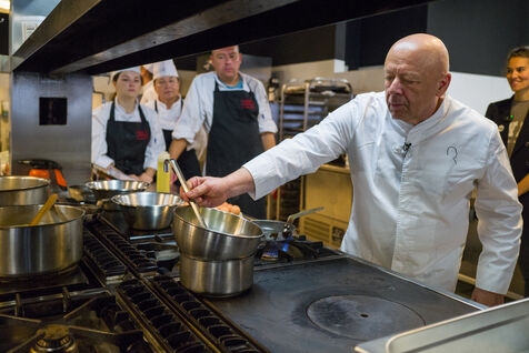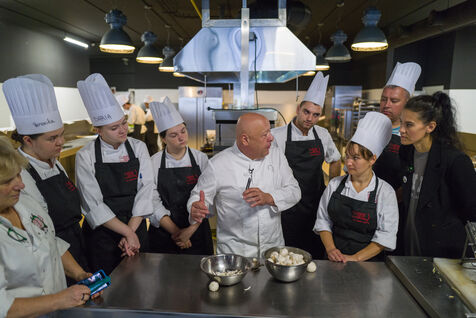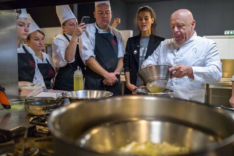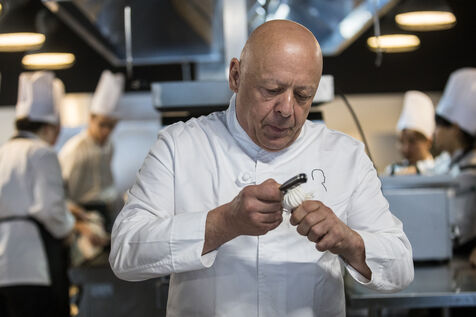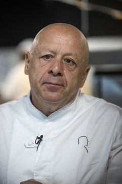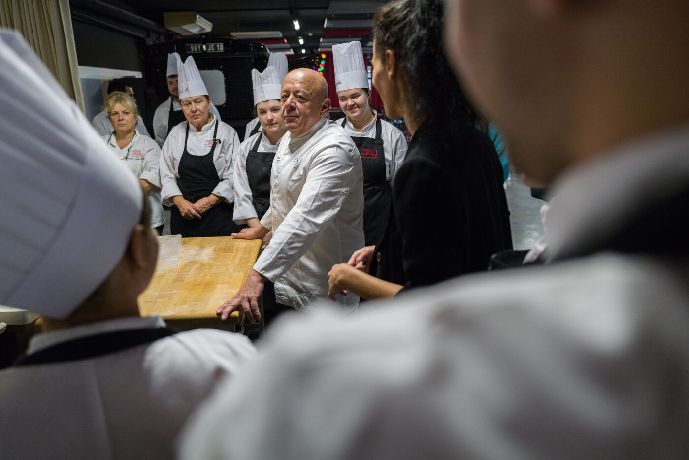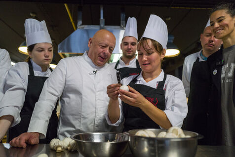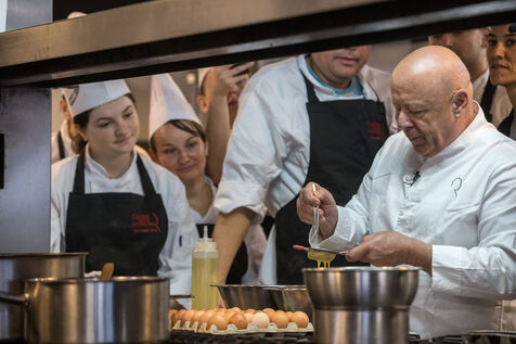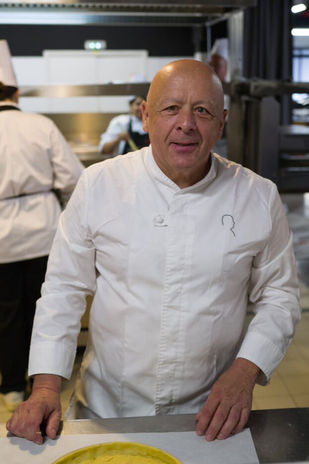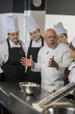 France, Toulouse, 2024-10-04. The French businessman and chef Thierry Marx during his time at the Cuisine et instructions school where he cooked with Ukrainian students.