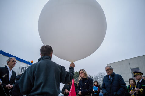 France, Toulouse, 2025-01-16. Agnes Pannier-Runacher, Minister of Ecological Transition, Biodiversity, Forests, Sea, Fisheries, traveling to the Meteo France site in the suburbs of Toulouse