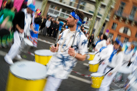 Ambiance festive et coloree dans les rues du centre ville de Toulouse dans le sud de la France lors du carnaval de Toulouse organise par le Comite d Organisation du Carnaval Unifie, COCU.