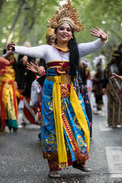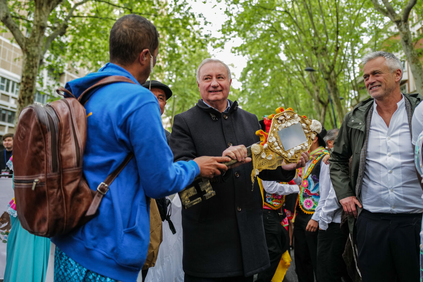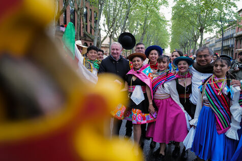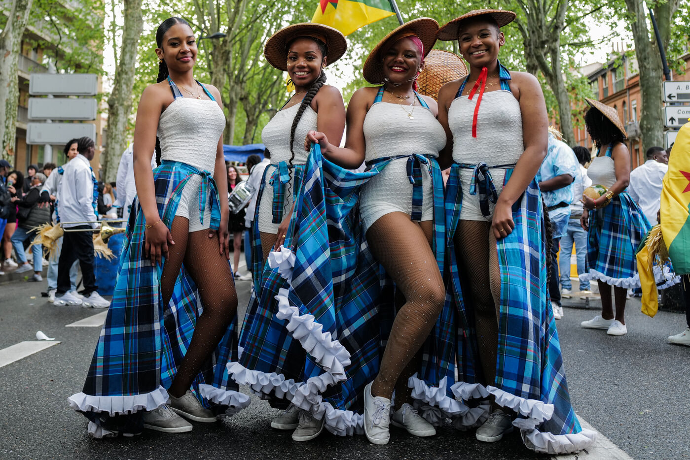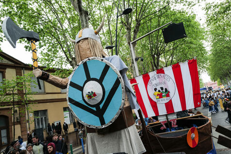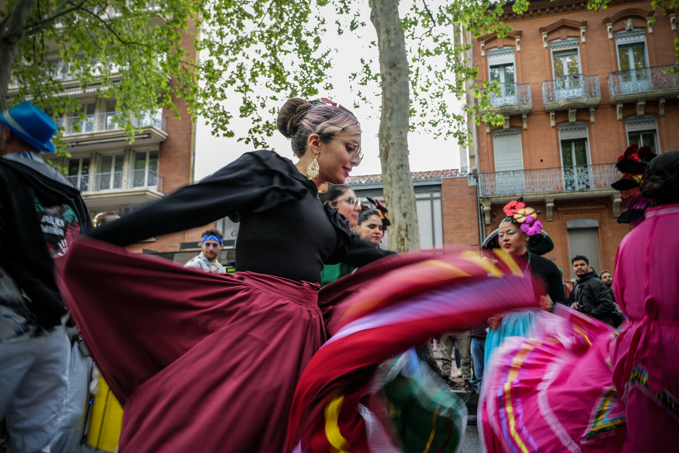 France, Toulouse, 2025-04-19. Festive and colorful atmosphere takes place in the streets of downtown Toulouse in the south of France during the Toulouse Carnival organized by the Unified Carnival Organization Committee (COCU).