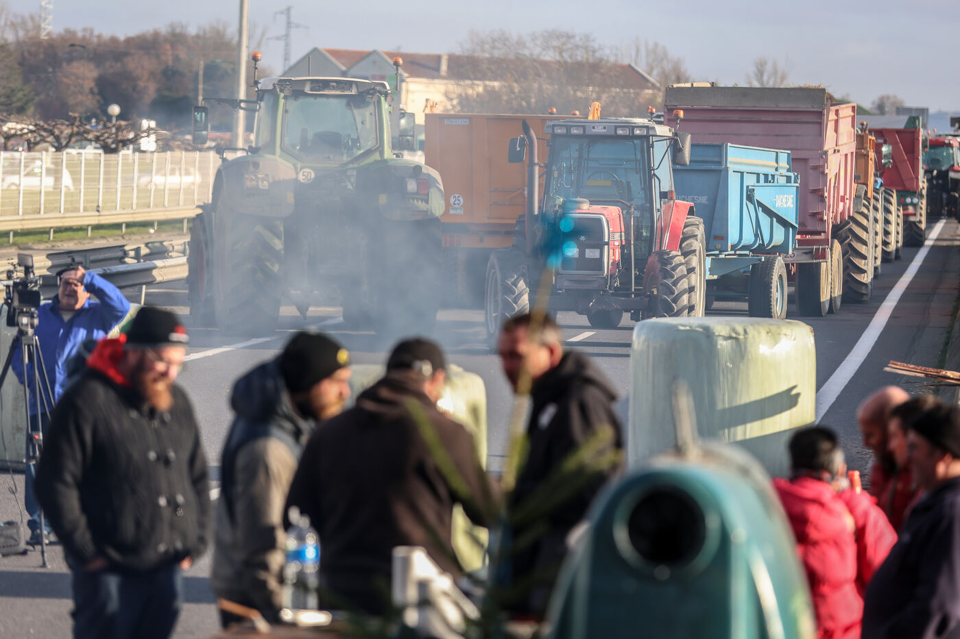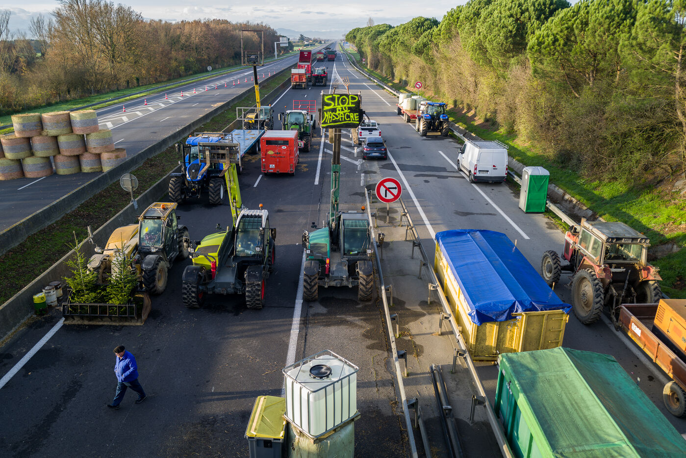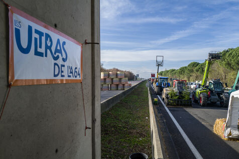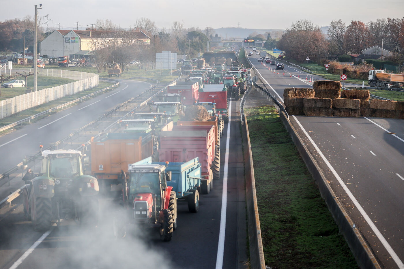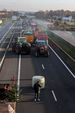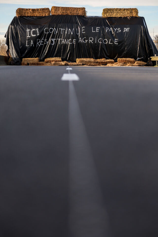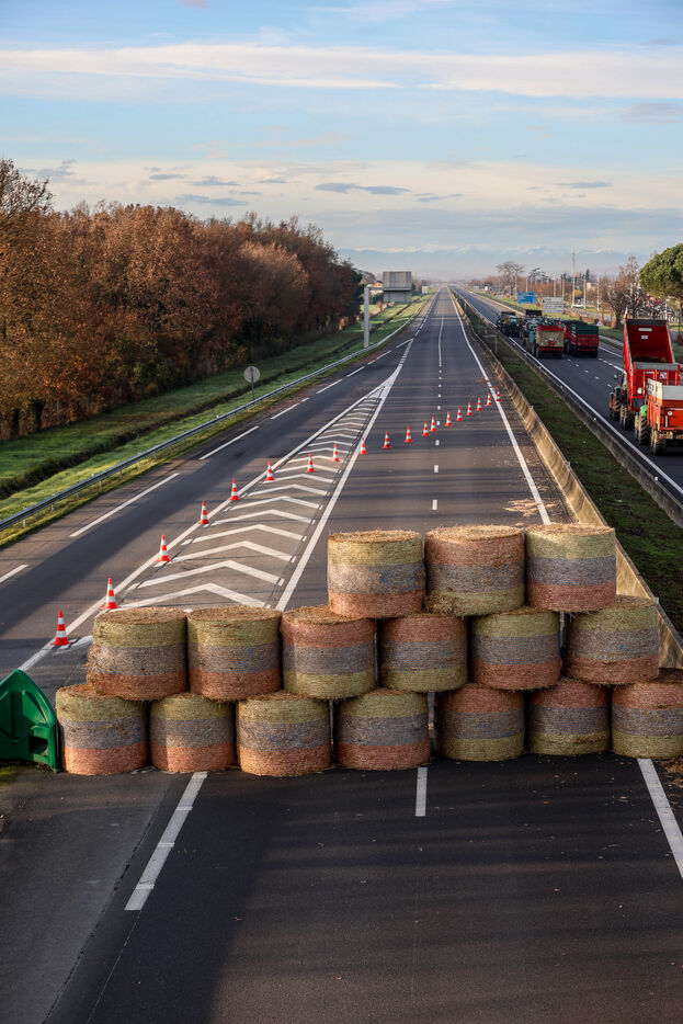 Farmers block the A64 motorway in southern France to protest the management and slaughter of cows in response to the outbreak of lumpy skin disease (LSD) affecting France and the Occitanie region.