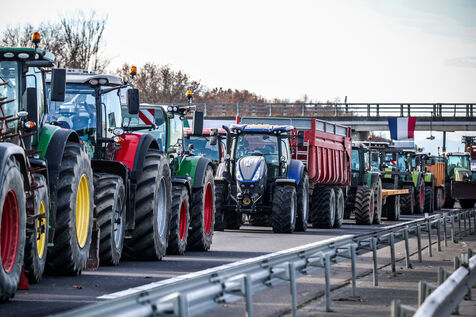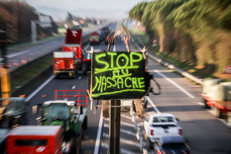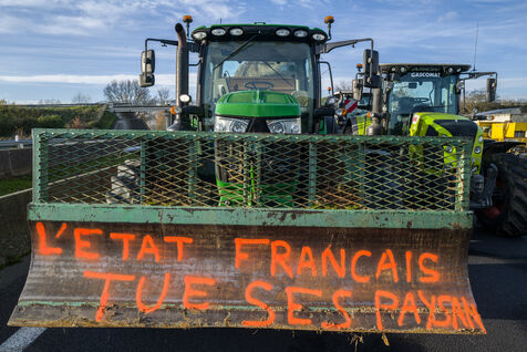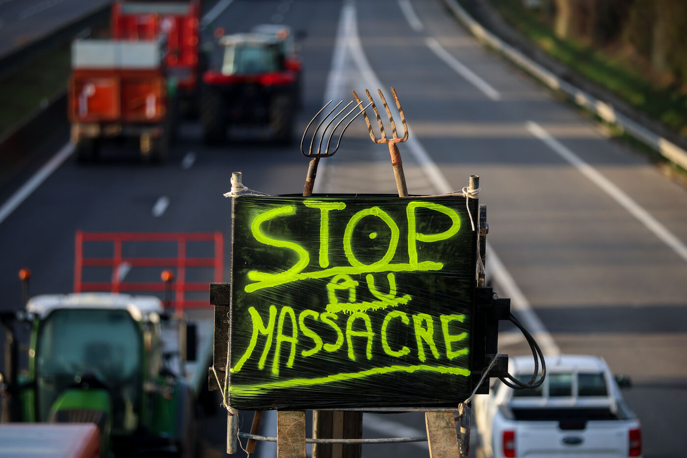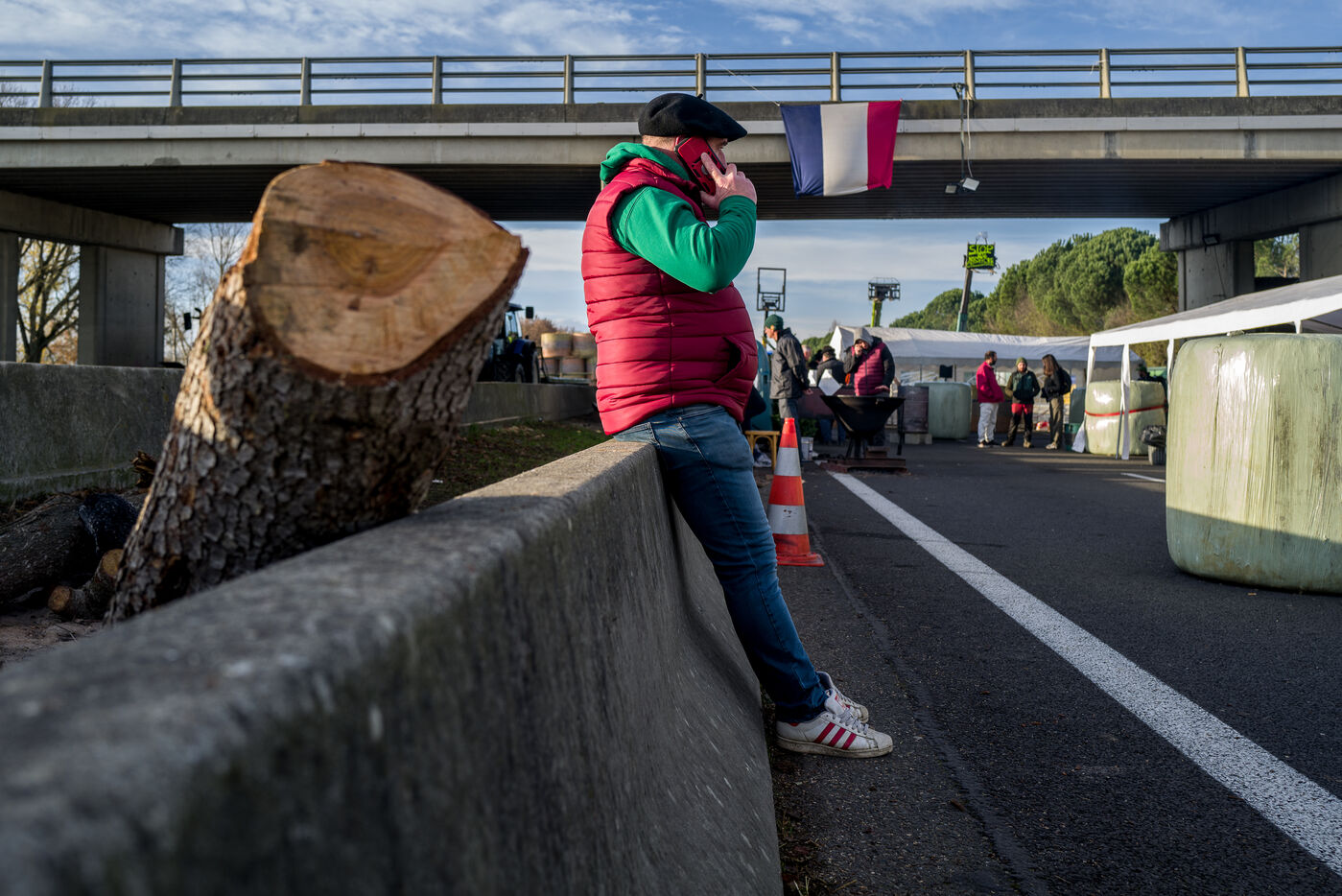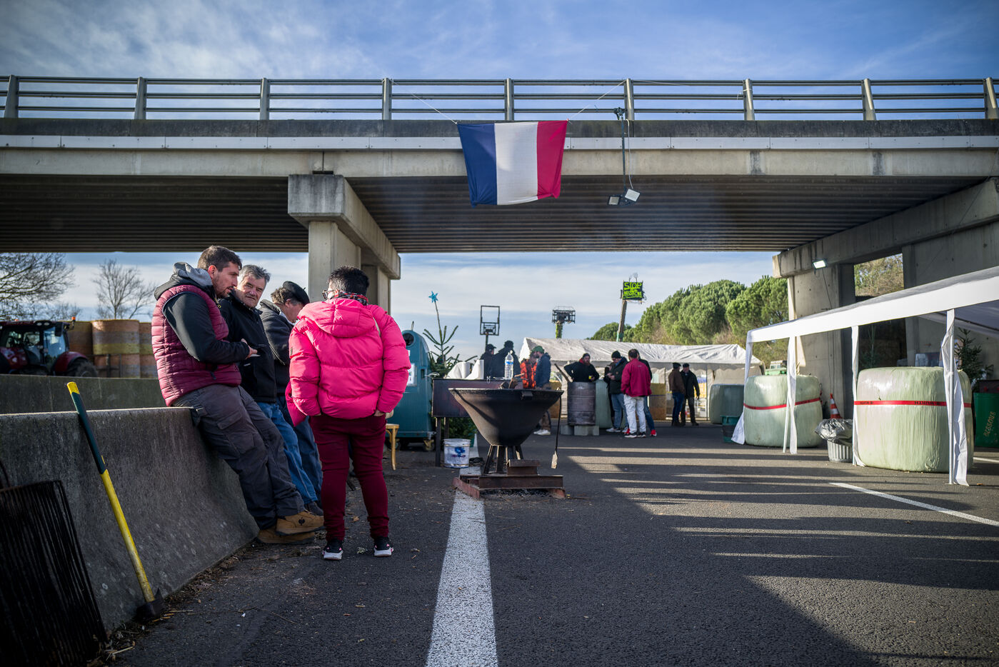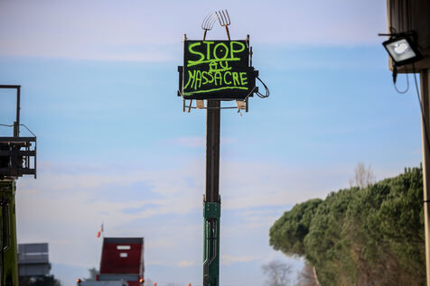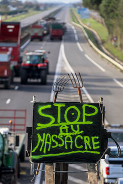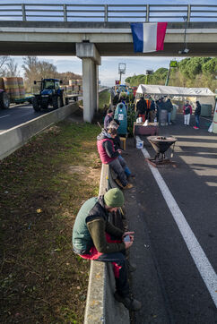 Farmers block the A64 motorway in southern France to protest the management and slaughter of cows in response to the outbreak of lumpy skin disease (LSD) affecting France and the Occitanie region.