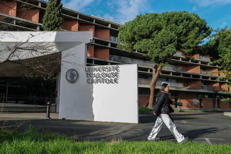 France, Toulouse, 2026-02-02. On the campus of the University of Toulouse 1. Created in 1968 and inherited from the University of Toulouse founded in 1229, the University of Toulouse-Capitole is focused on social sciences, law, political science, economics.